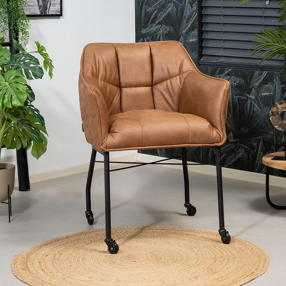 Esszimmerstuhl Leder Royce mit Rollen cognac - 4er Set