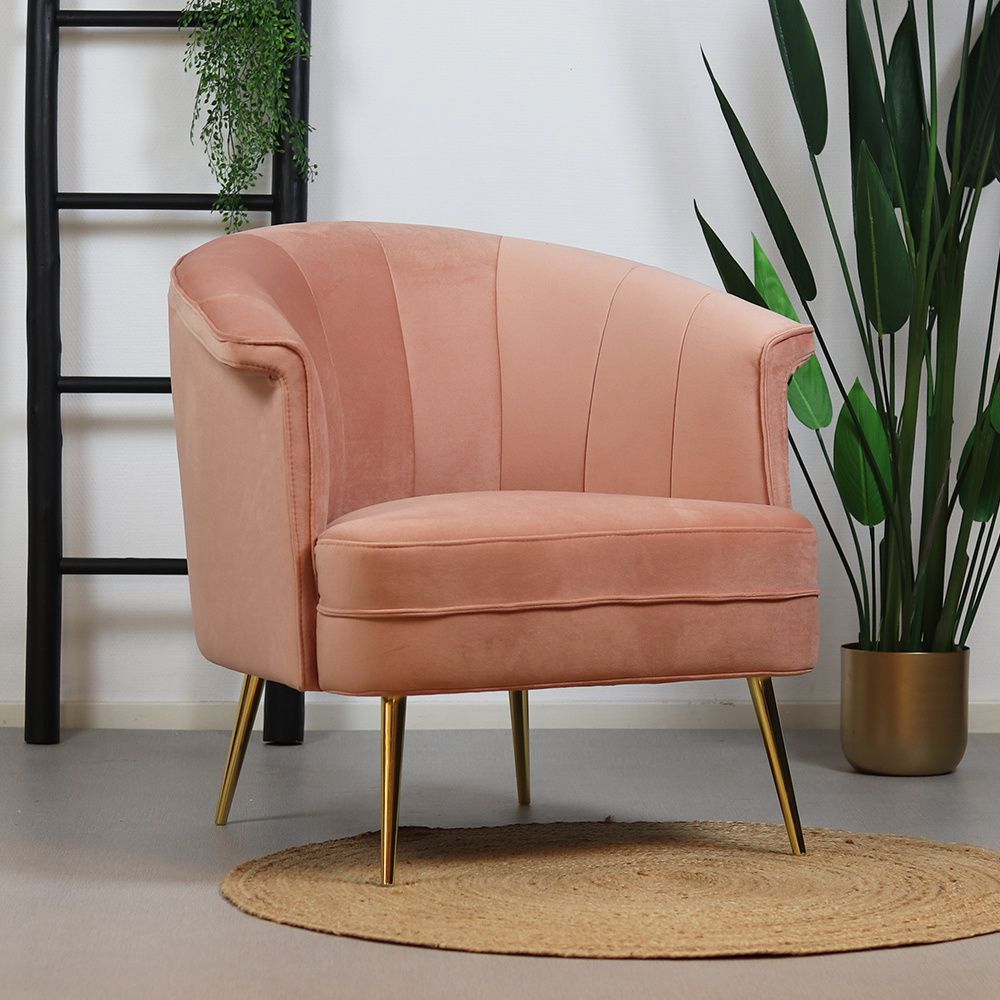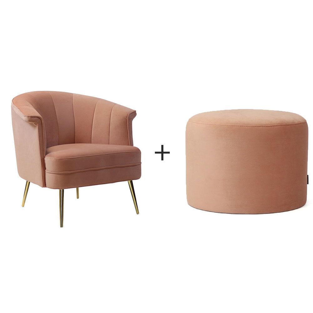 Bronx71 Samt Sessel Amy und Hocker Anna modern rosa