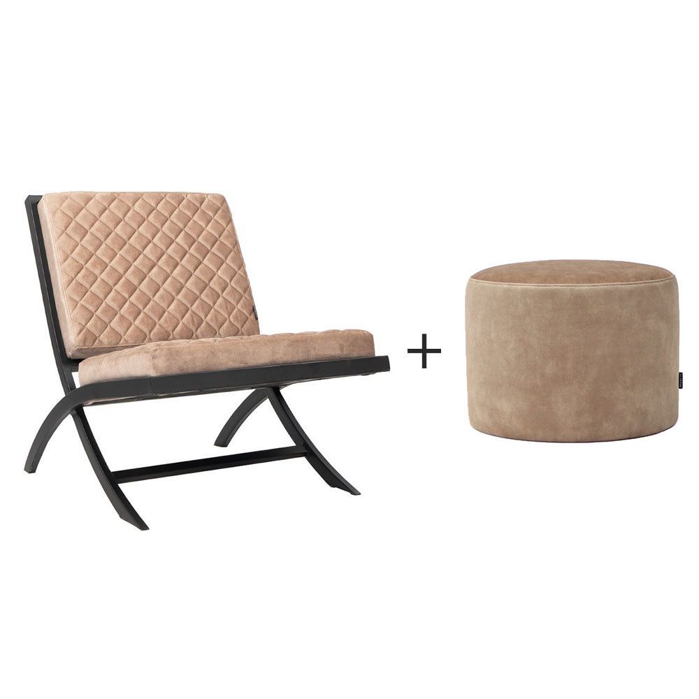 Samt Sessel Madrid Luxury Design und Samt Hocker Beau taupe