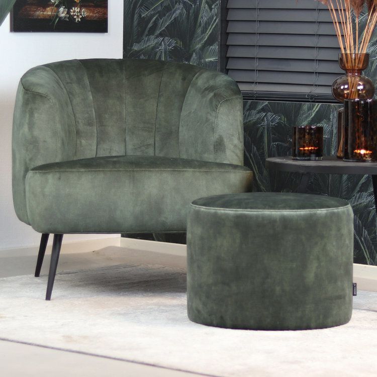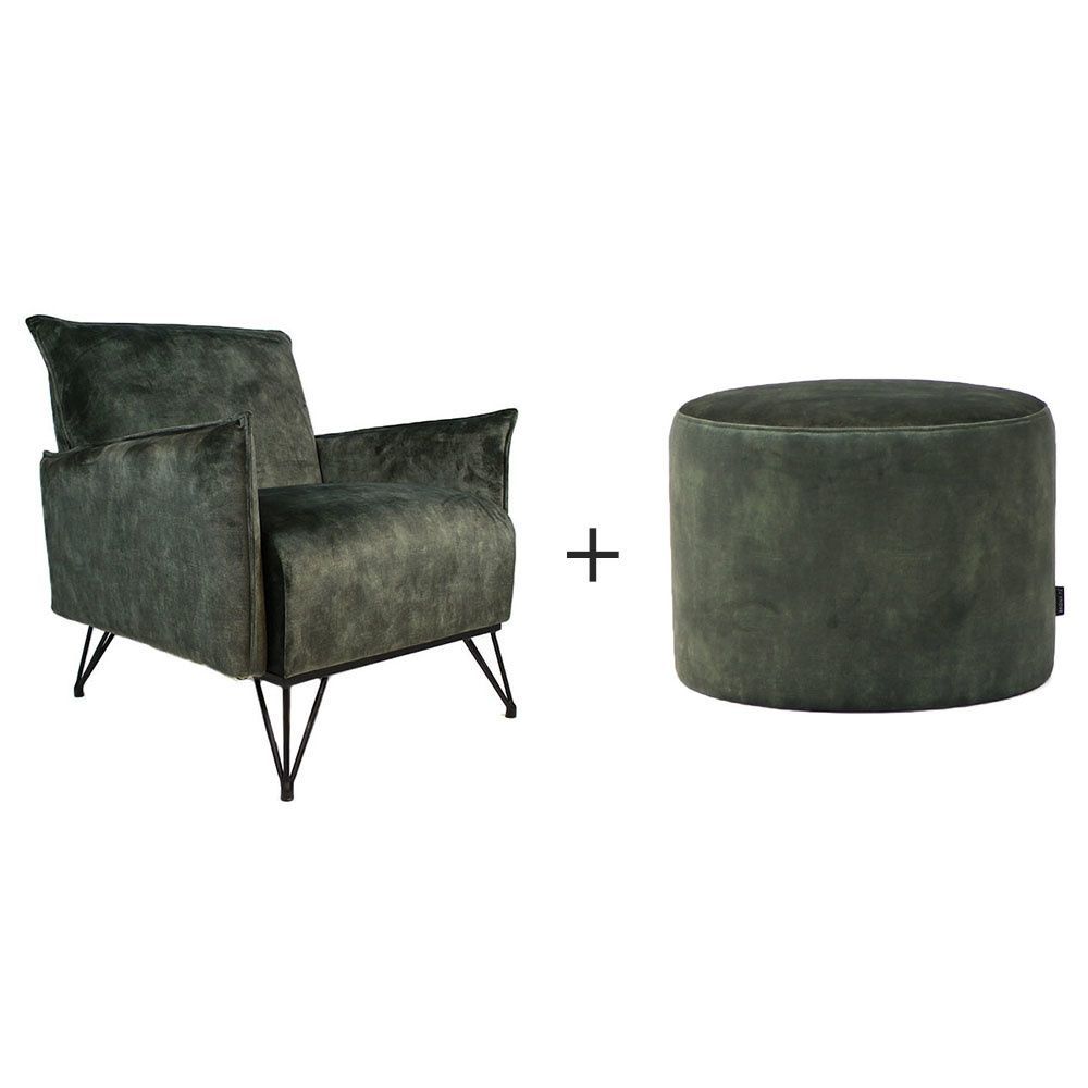 Bronx71 Samt Sessel Mika mit Armlehne und Samt Hocker Beau grün