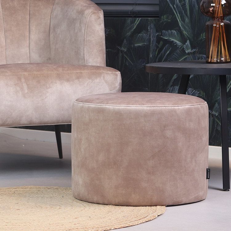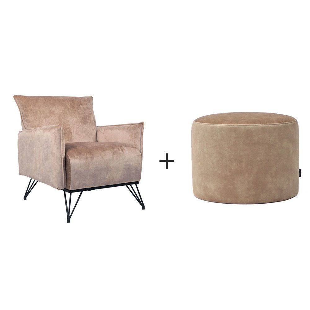 Samt Sessel Mika mit Armlehne und Samt Hocker Beau taupe