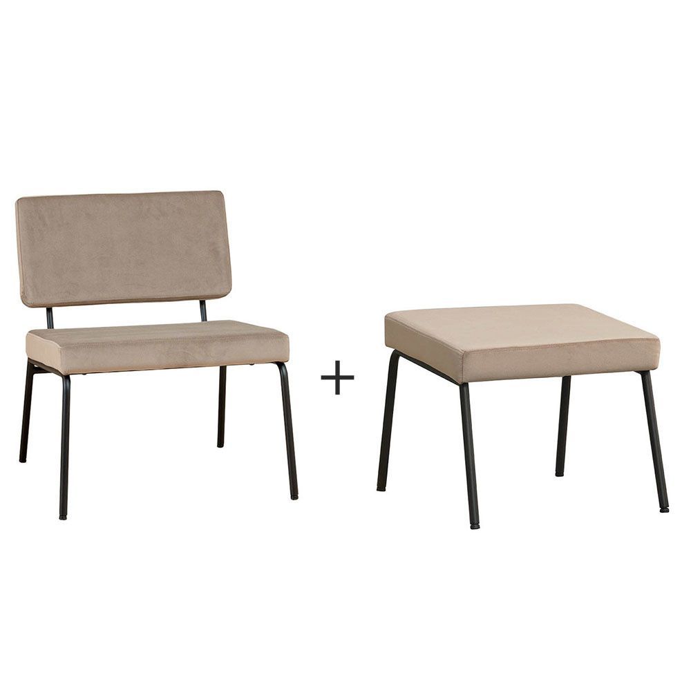 Bronx71 Sessel Espen mit Hocker Samt taupe