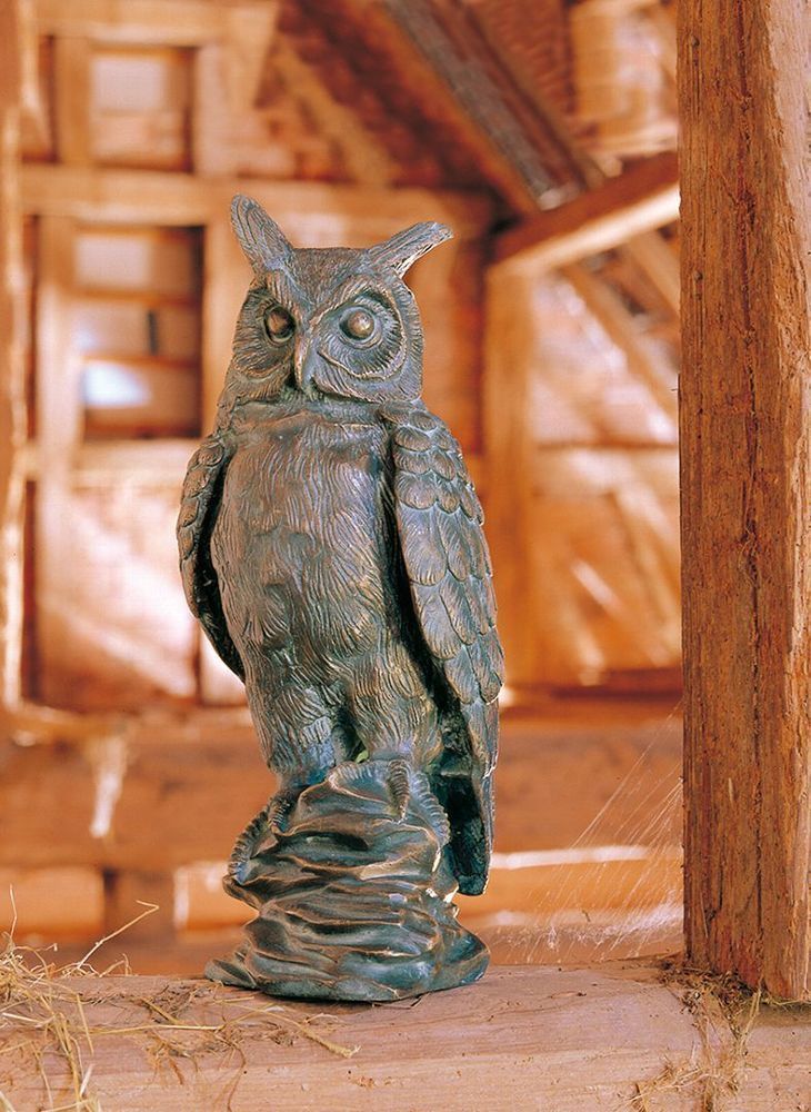 Bronzefigur Eule H38cm Rottenecker Bronze Uhu Kauz Vogel Dekoration