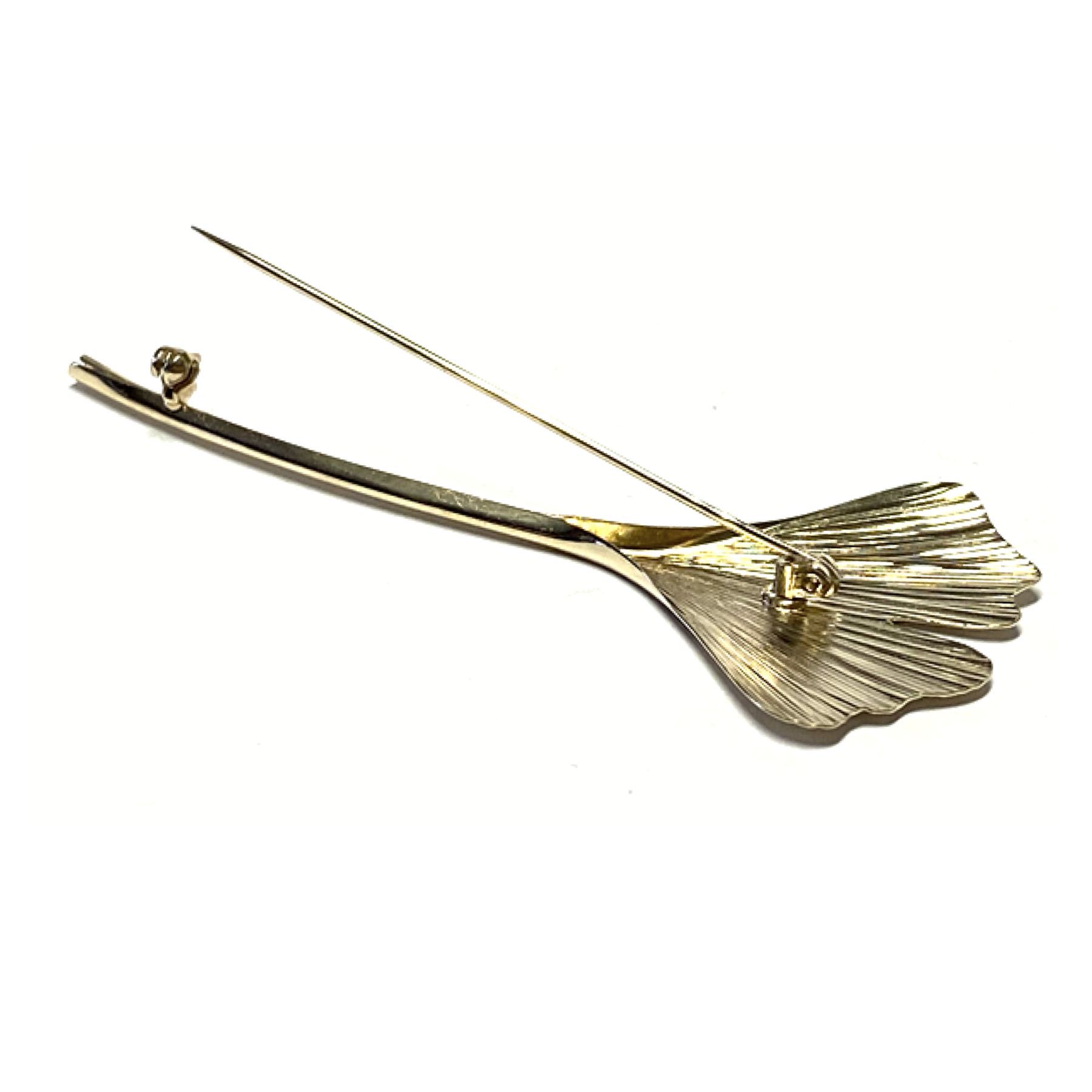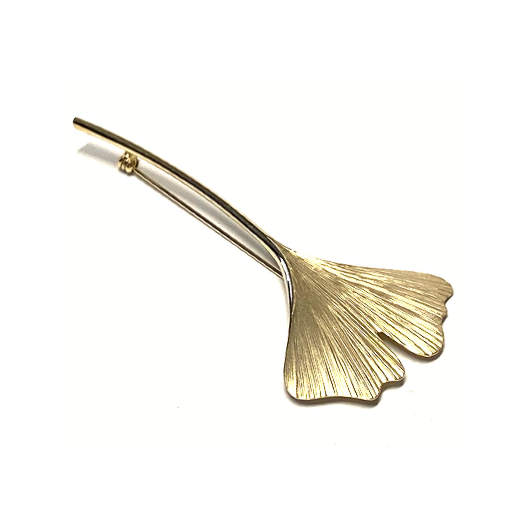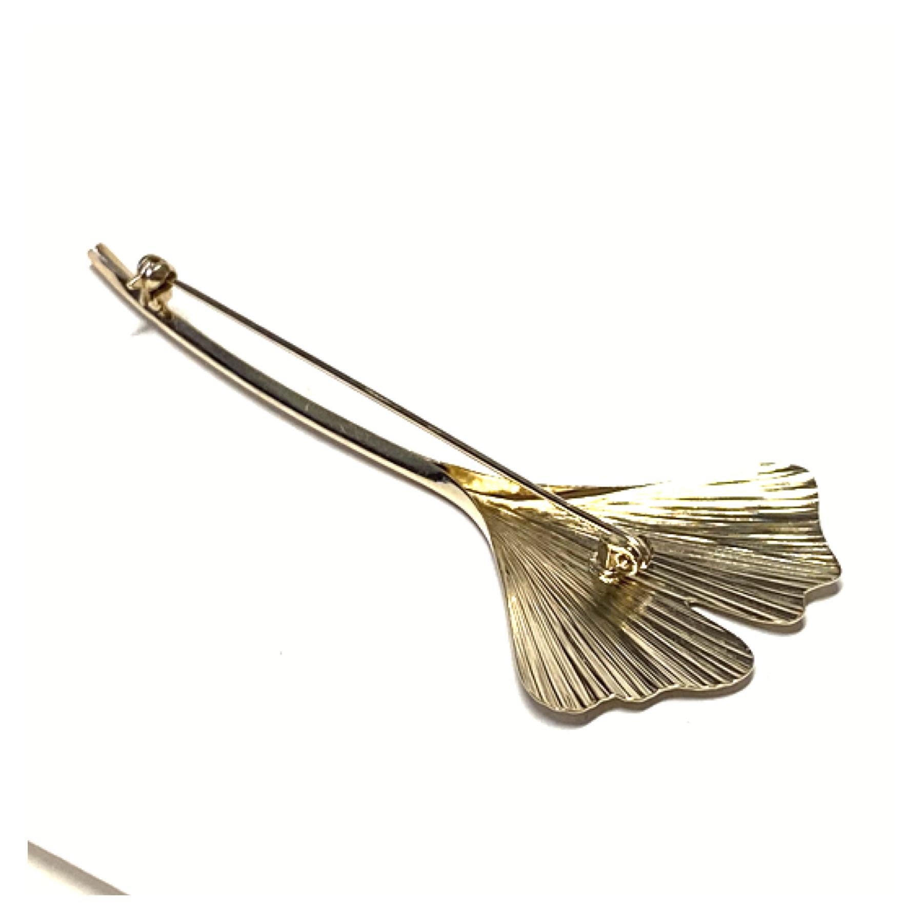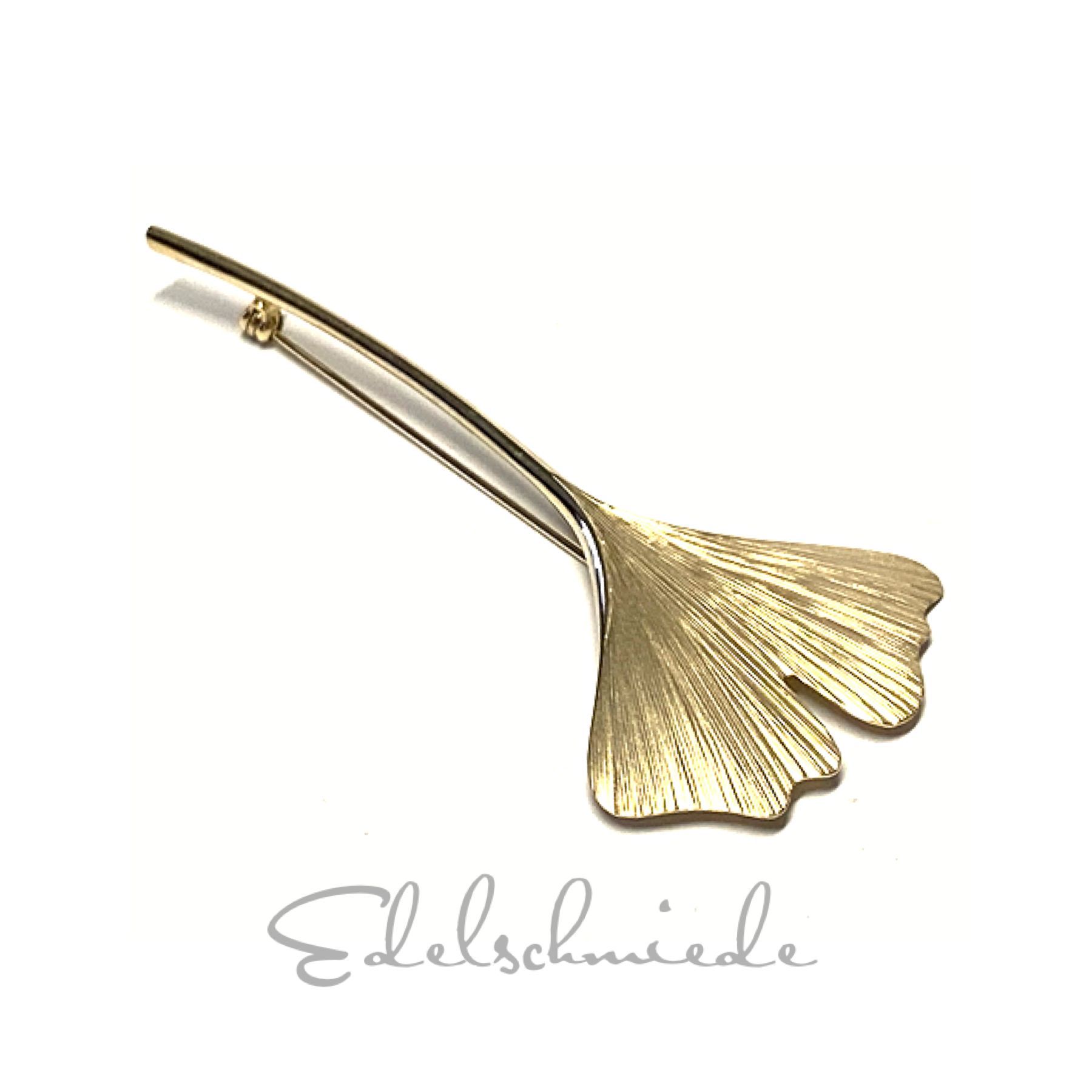 Brosche 333/- Gelbgold Ginko Blatt schmal lang einfarbig