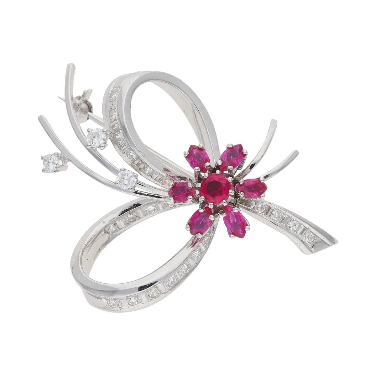 Brosche 750/000 (18 Karat) Weißgold mit Rubin und Diamanten getragen 25320568