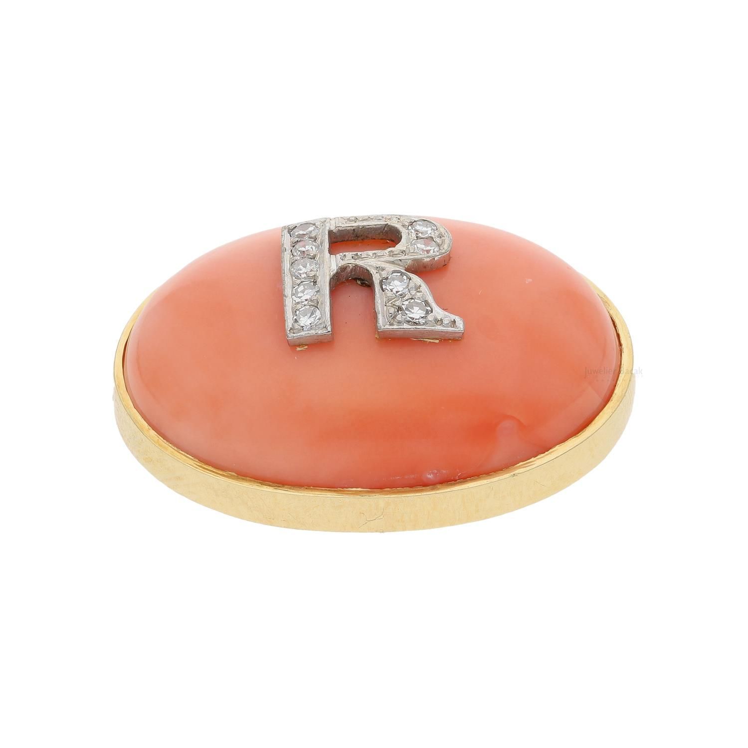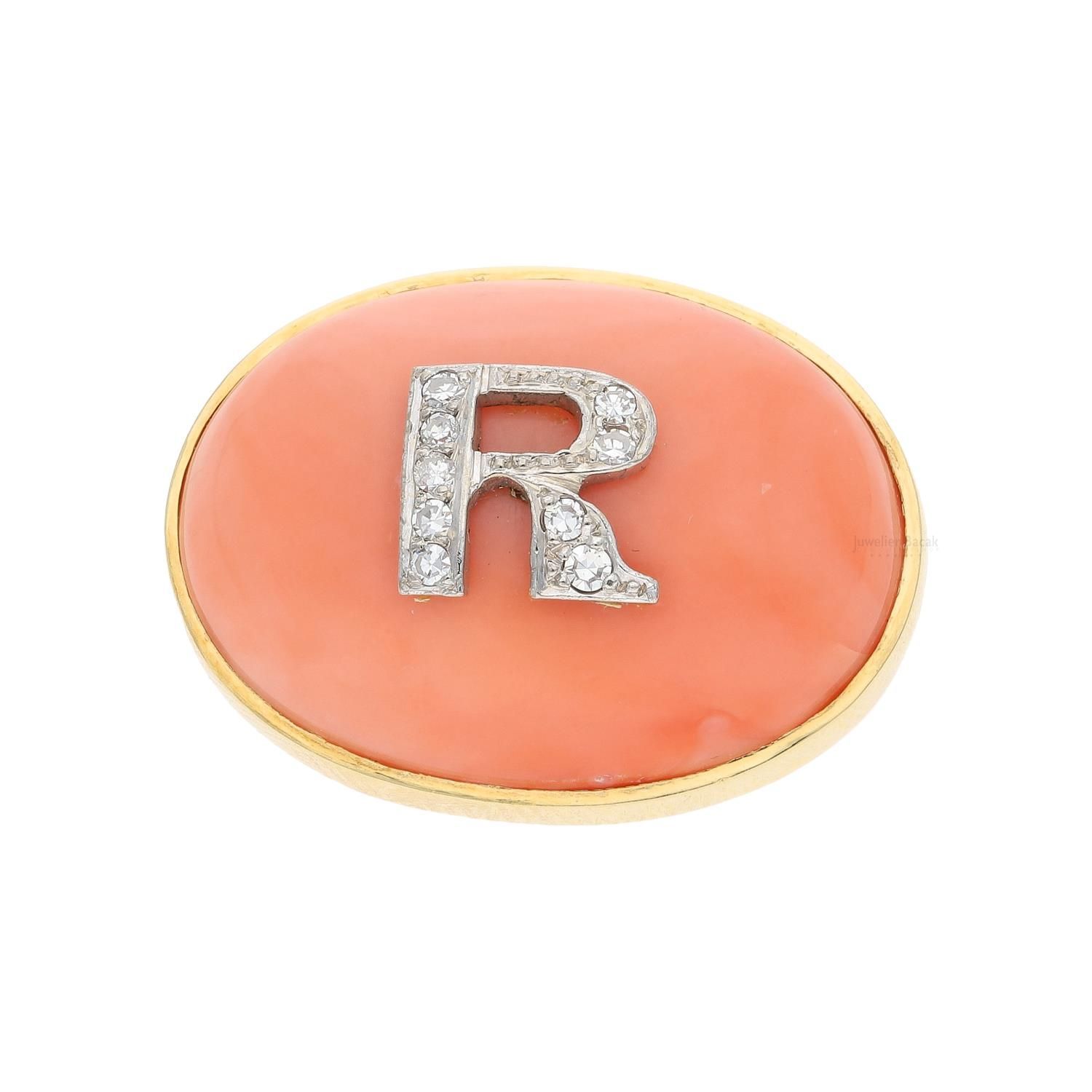 Brosche 750/000 Gelbgold, Weißgold, Diamanten, Koralle, Handarbeit, getragen