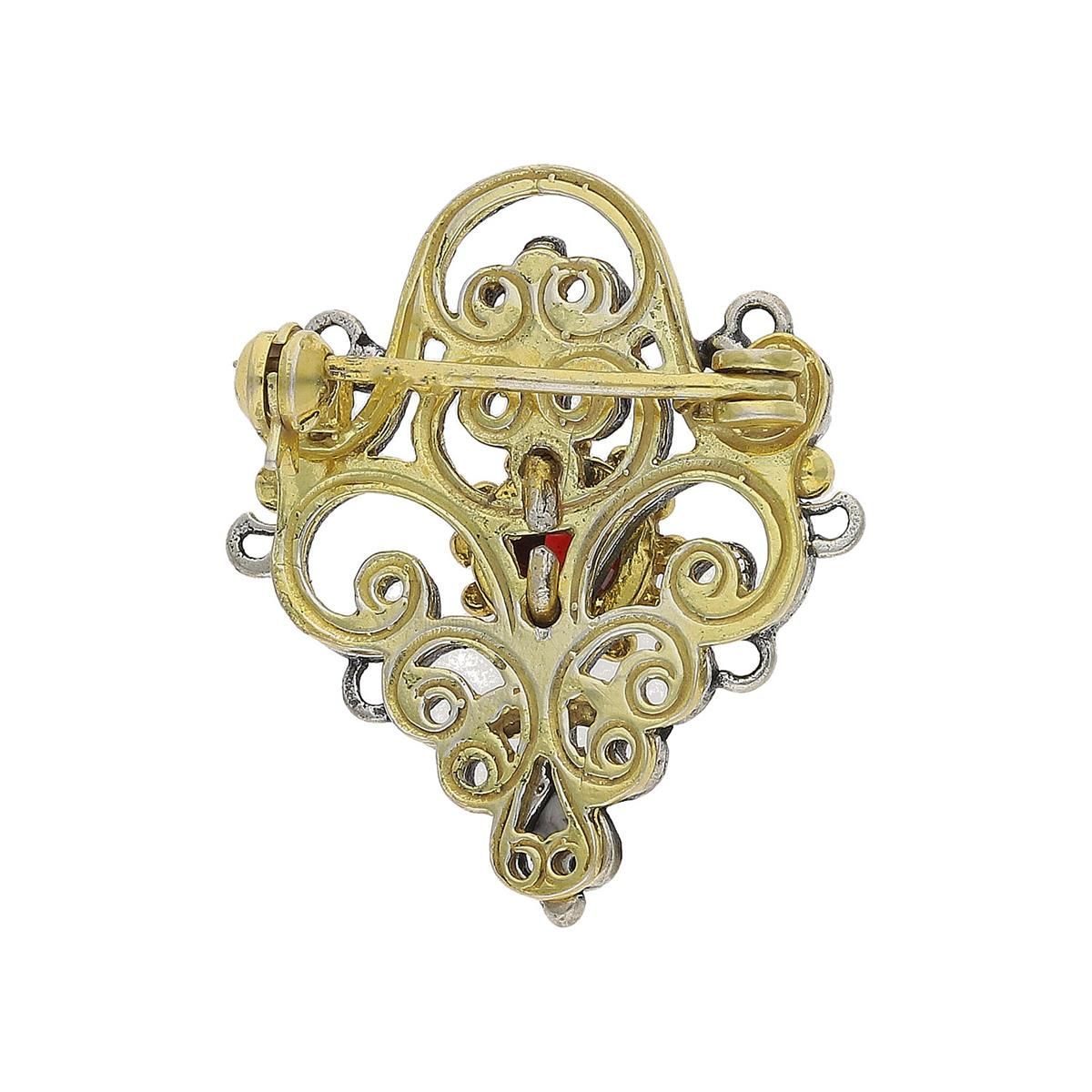 Brosche 835/000 Silber geschwärzt & vergoldet mit Granat getragen Handarbeit 25321192