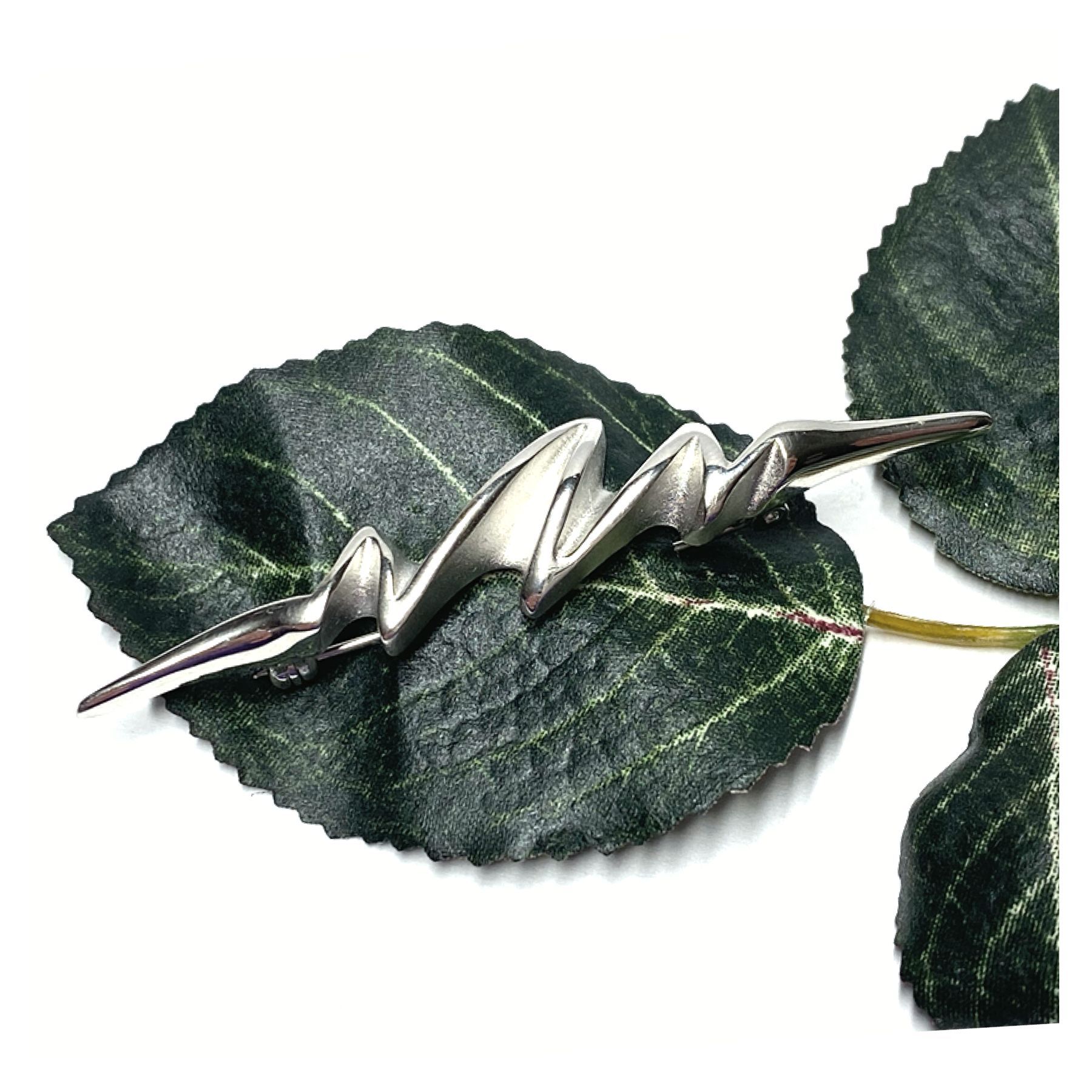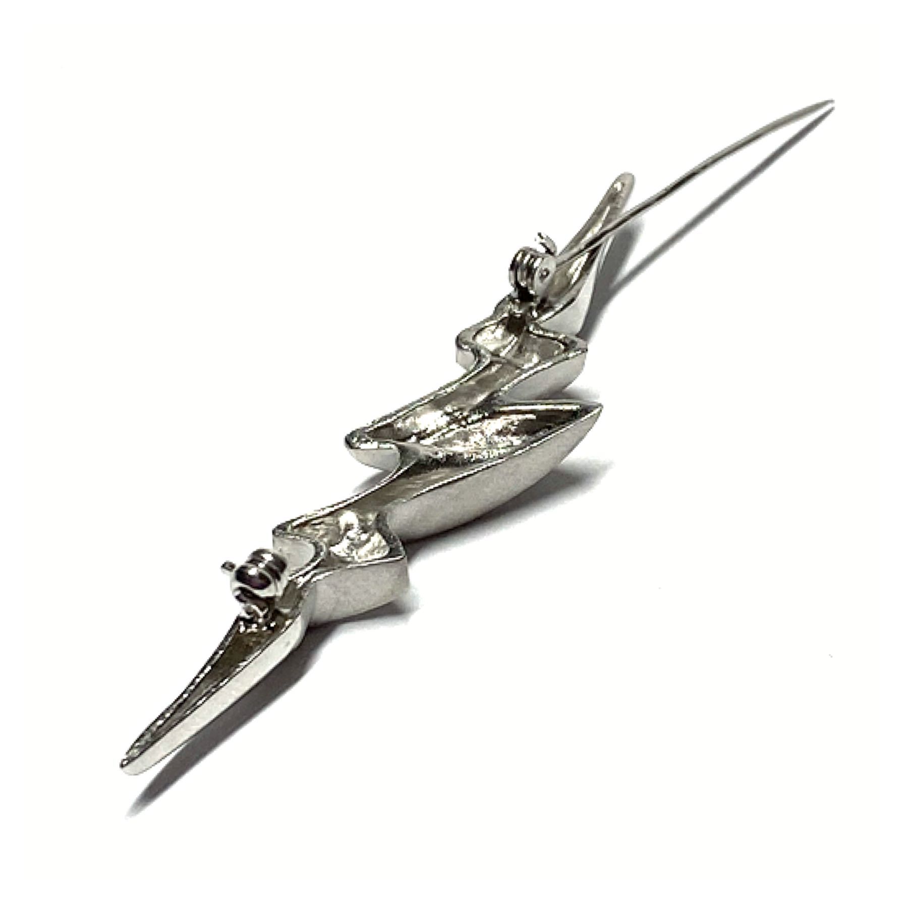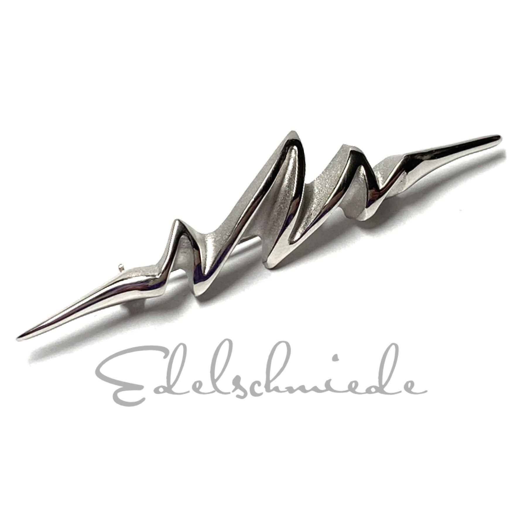 Brosche 925 Silber schmal lang einfarbig teilweise matt zickzack