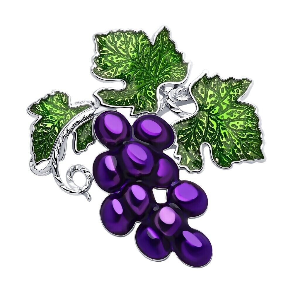 Brosche Anstecknadel 925 Silber Emaille Weintrauben Echtschmuck