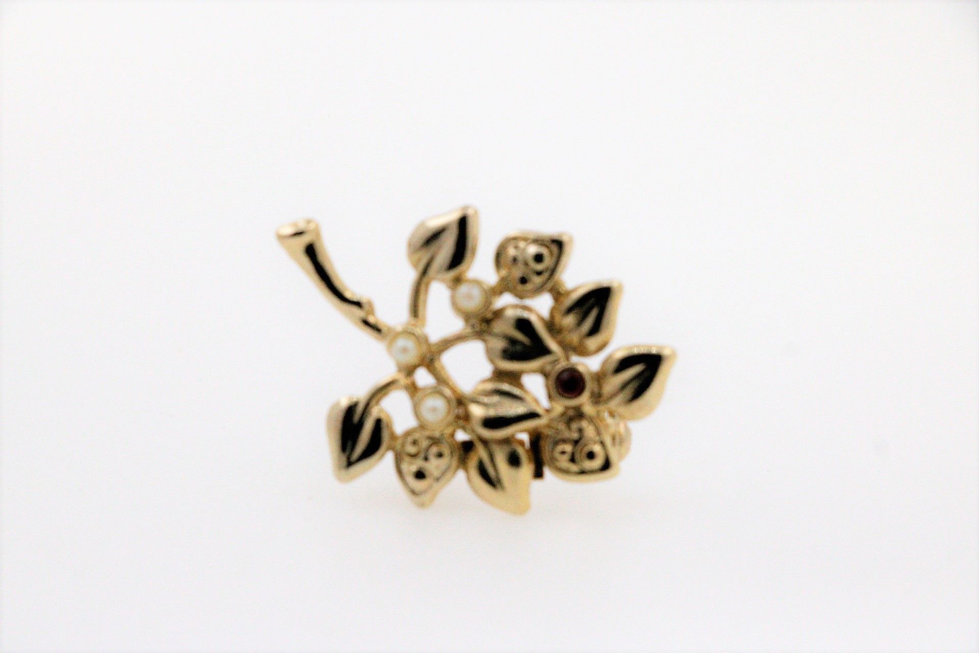 Brosche aus vergoldetem Tombak mit Perlchen und Steinchen