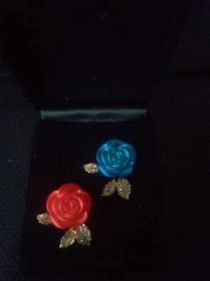 • Modeschmuck 2 Broschen in Form einer Blume in Rot u. Blau