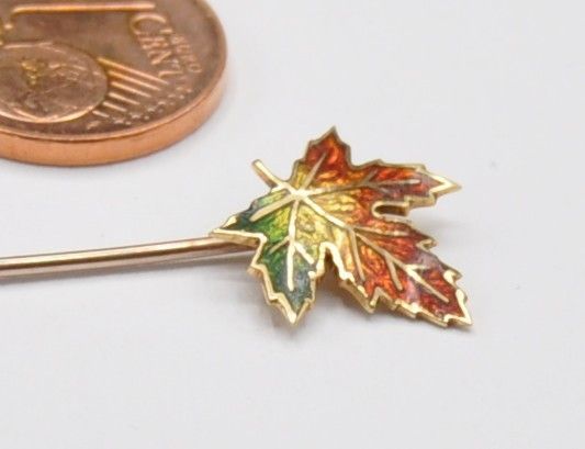 Brosche Nadel Ahorn Blatt Emaille Handarbeit 750 Gold neu wertig