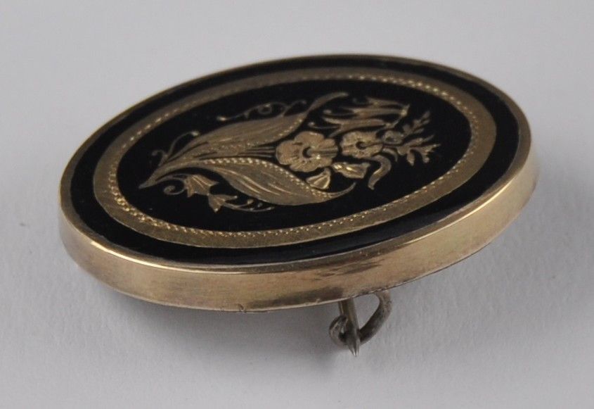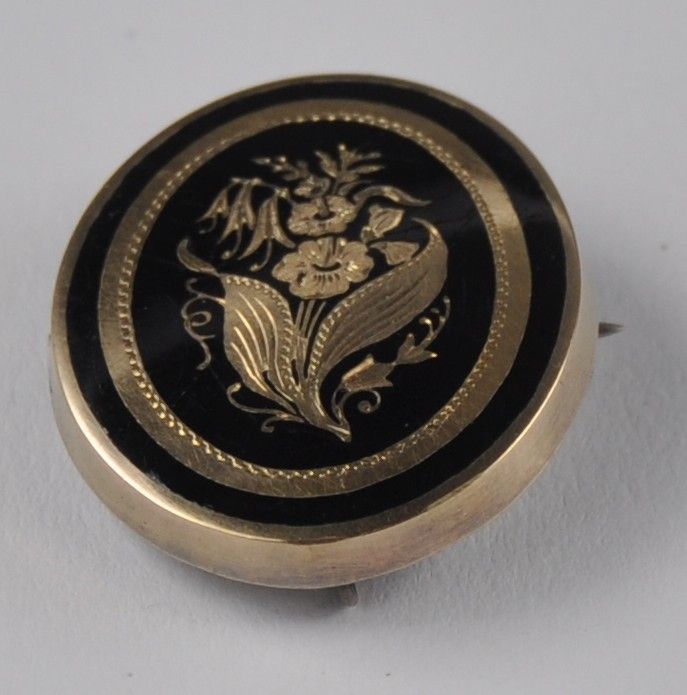 Brosche Nadel floral Trauer Antik Emaille 750 Gold