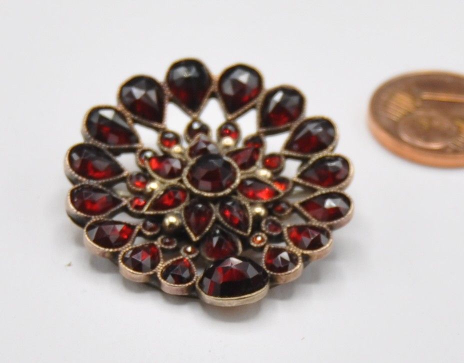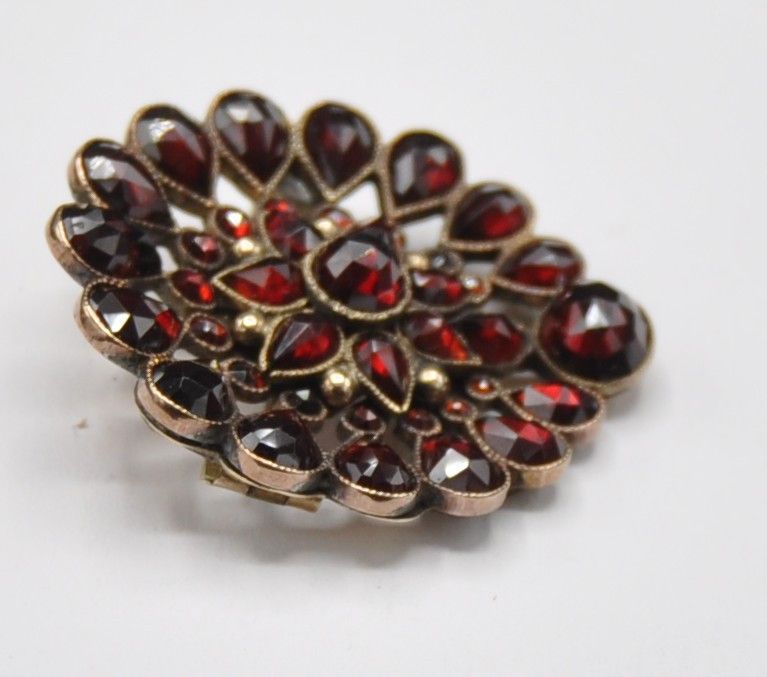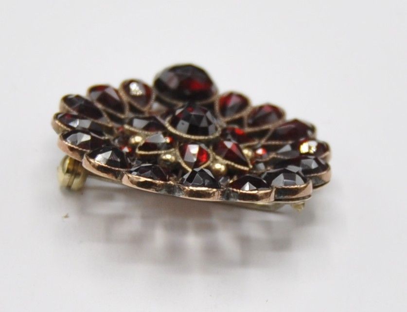 Brosche Nadel Granat gewölbt 585 Gold Goldschmiede Unikat Vintage
