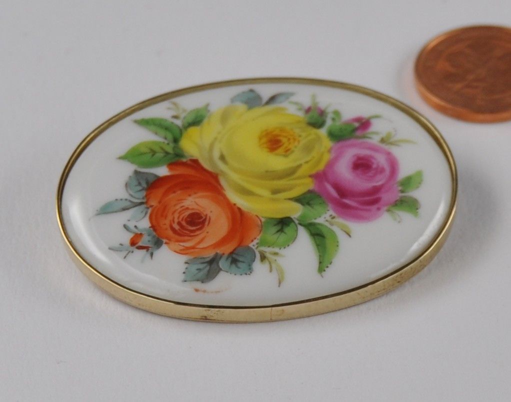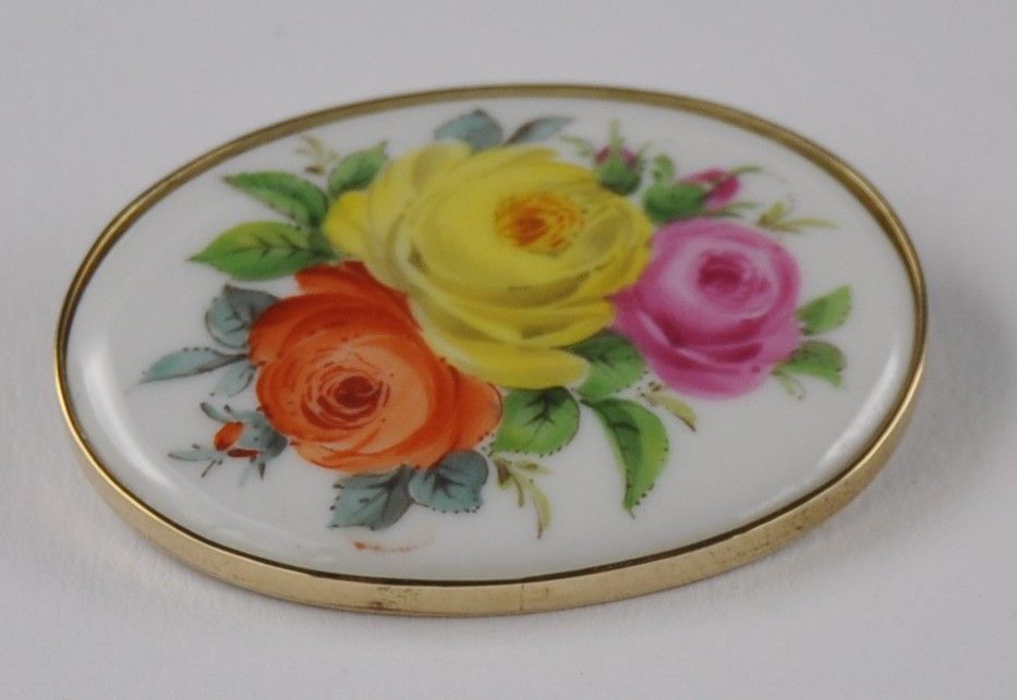 Brosche Nadel groß waagerecht Meissen Blumen 585 Gold Massiv Neu wertig