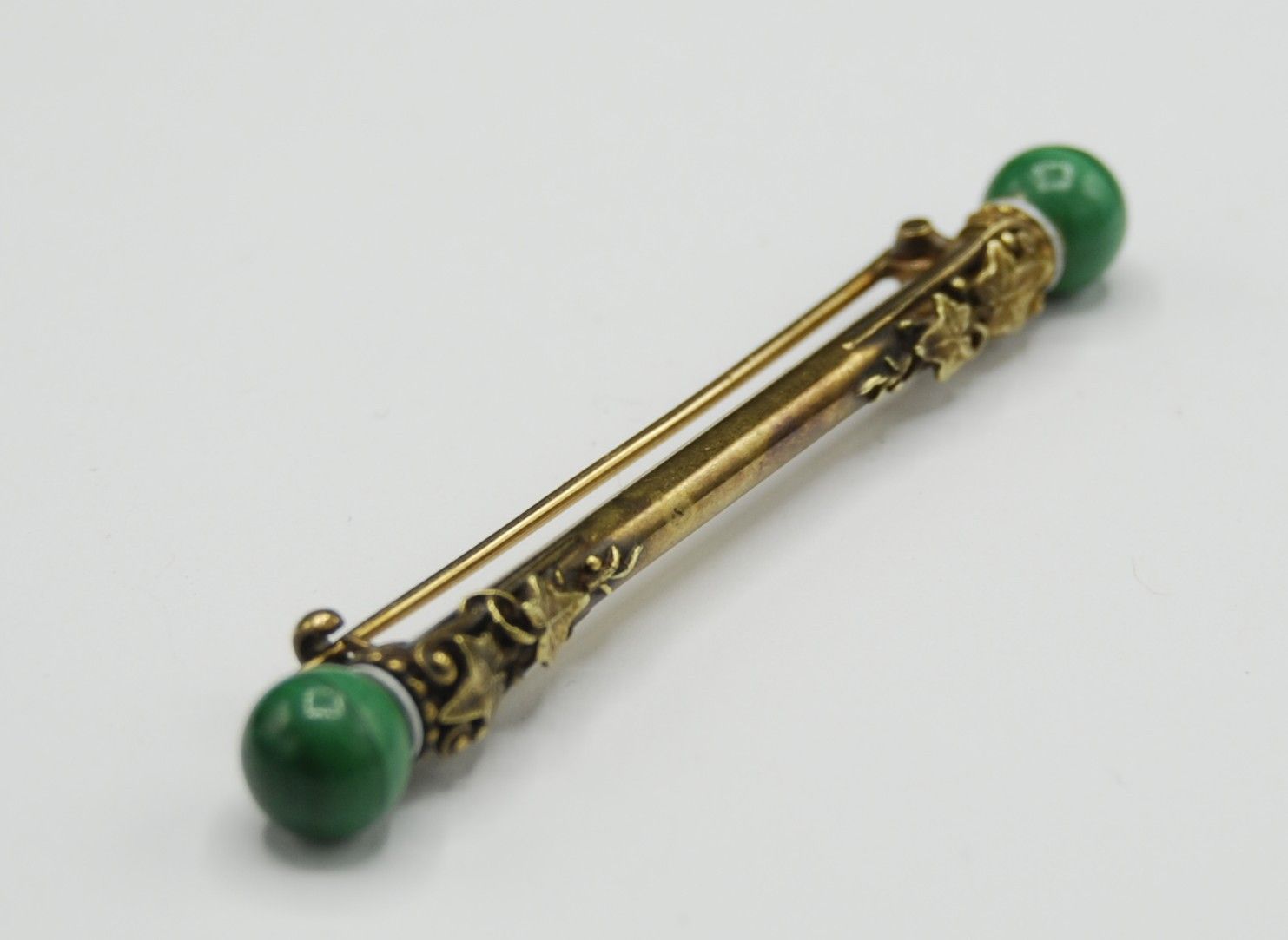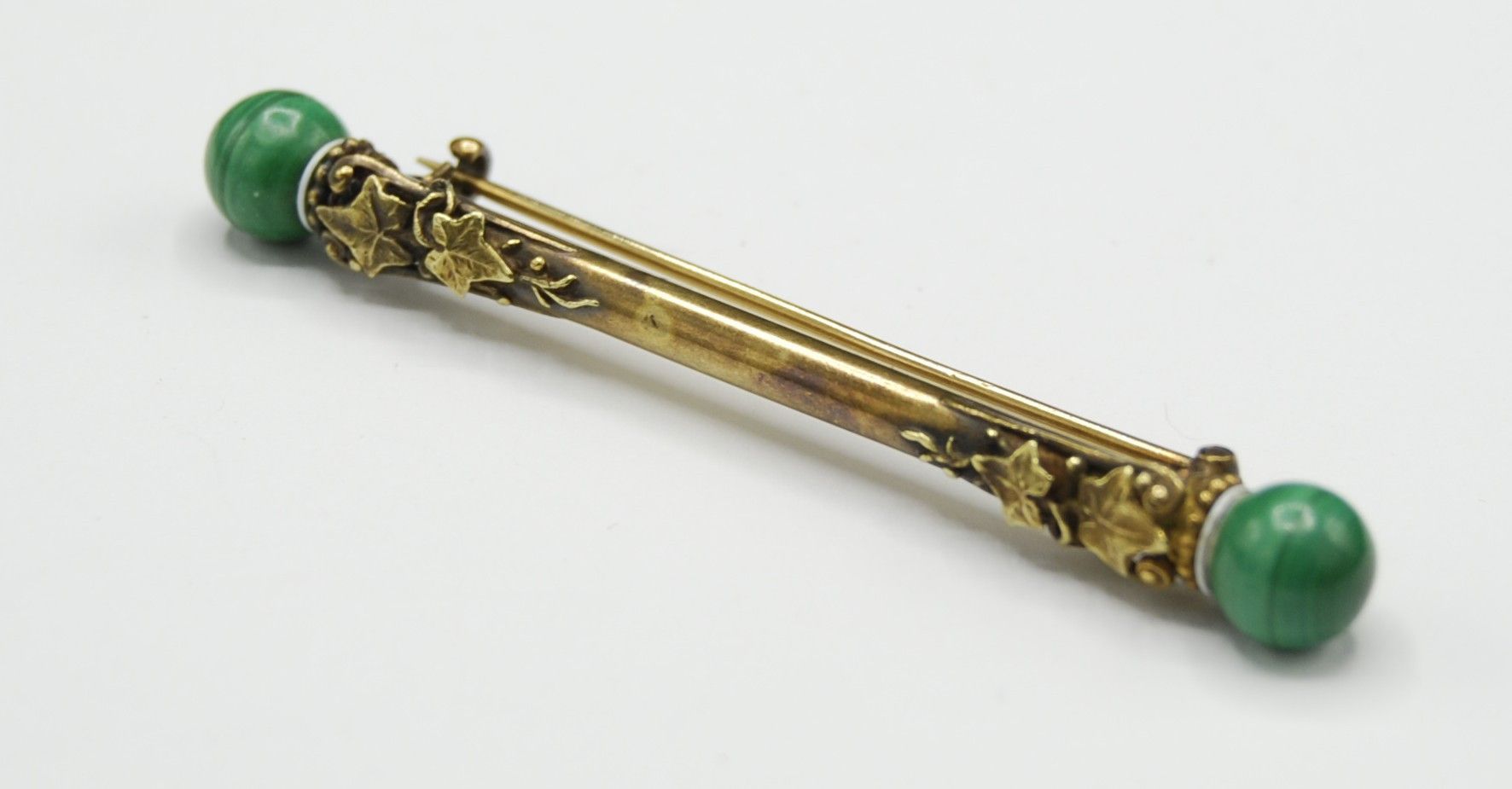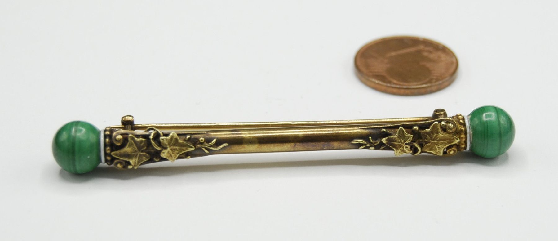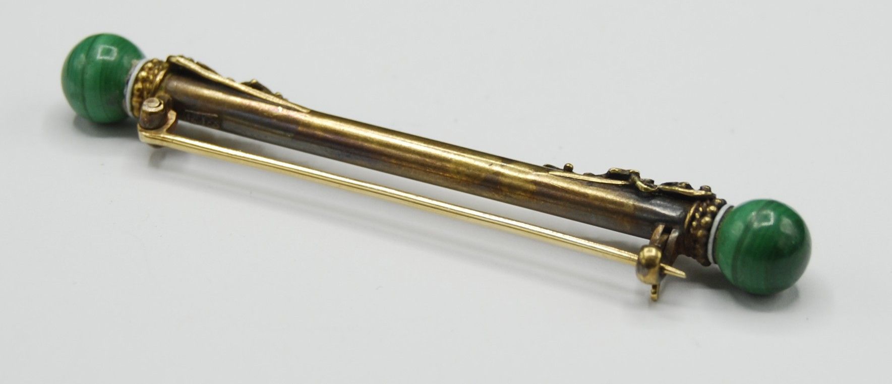 Brosche Nadel Malachit 585 Gold Antik massiv