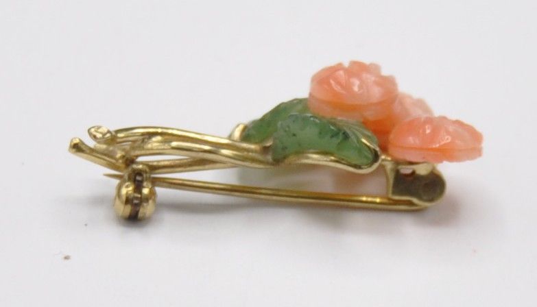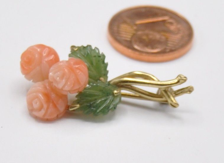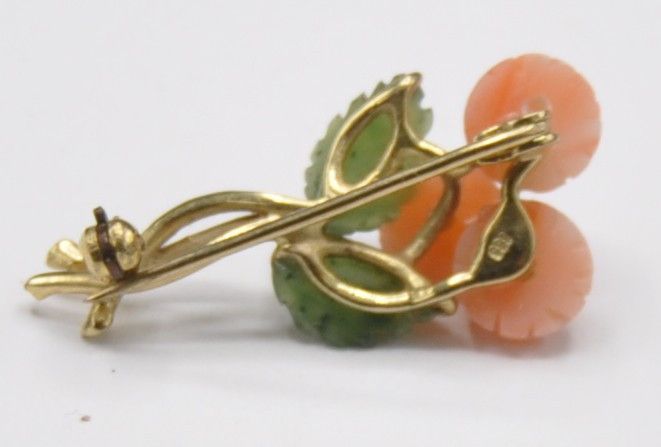 Brosche Nadel Zweig Blume Jade Neprith Rhodochrosit 333 Gold Vintage