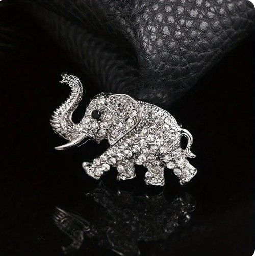 Brosche silberner Elefant mit kleinen Strasssteinen besetzt
