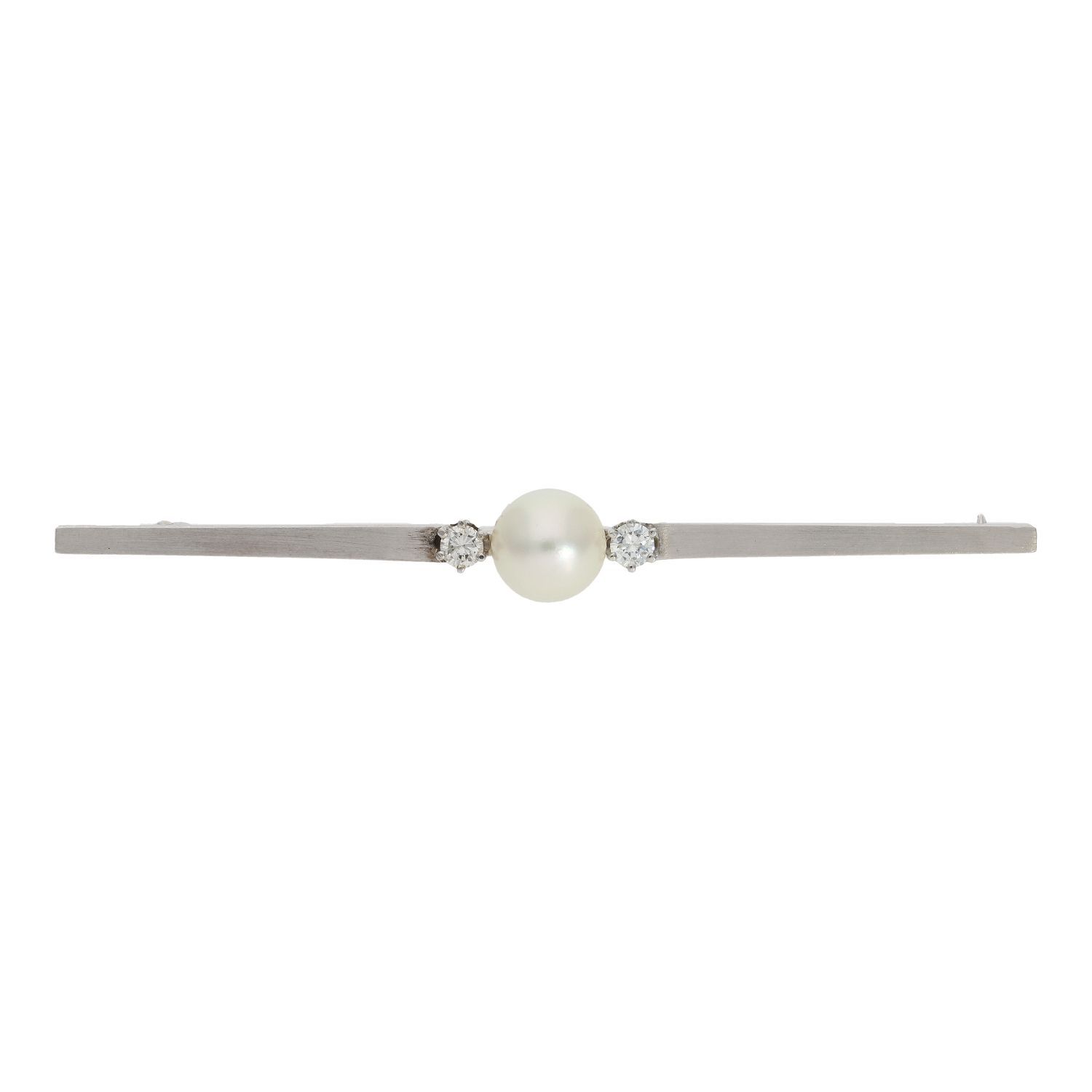 Brosche Weißgold 585 mit Perle und Brillanten Second Hand wie neu 25325937 getragen