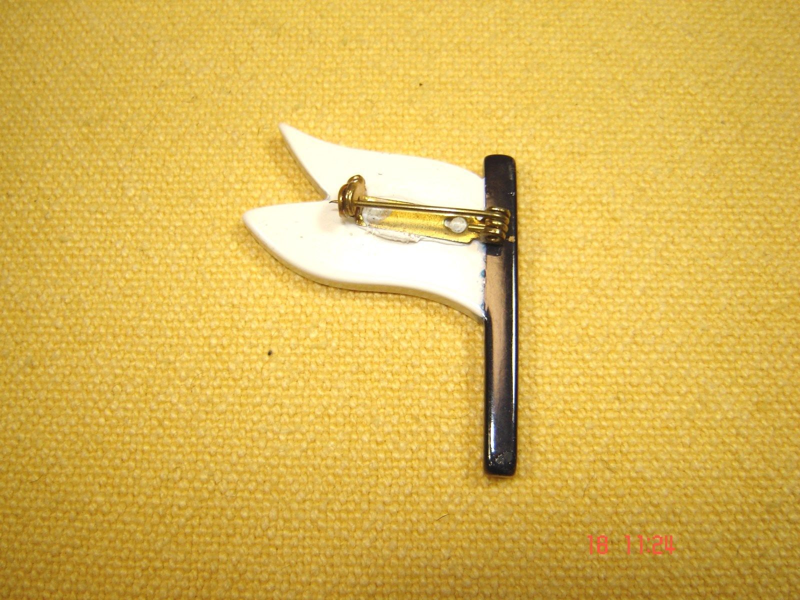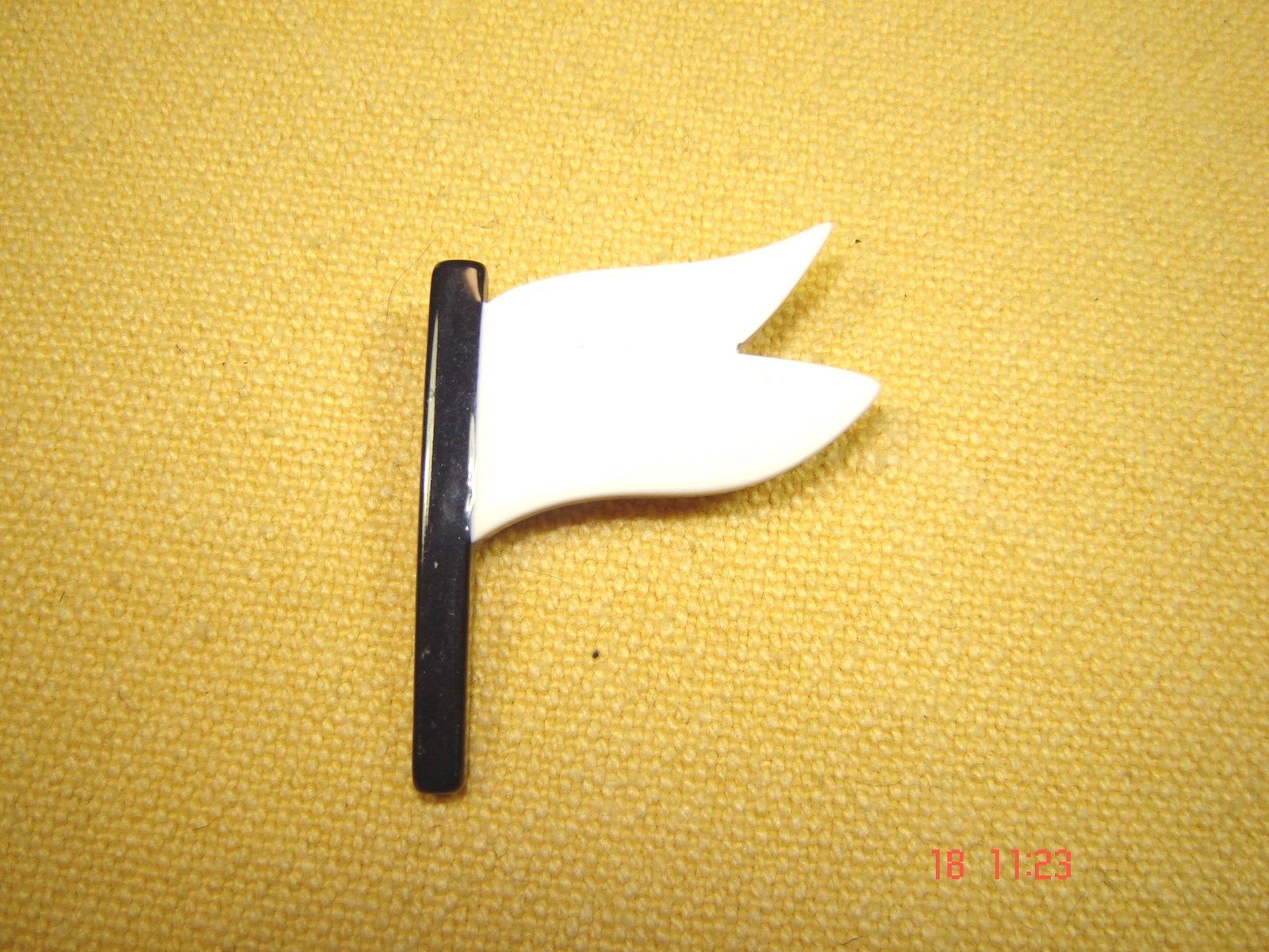 Brosche Wimpel Anstecknadel Kunststoff schwarz weiß Vintage 60/70er Z p