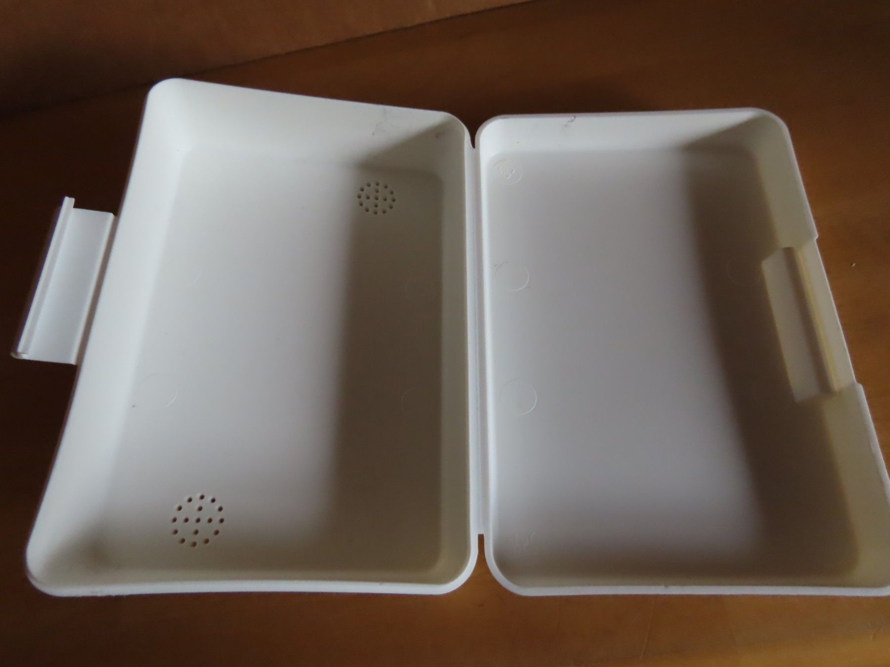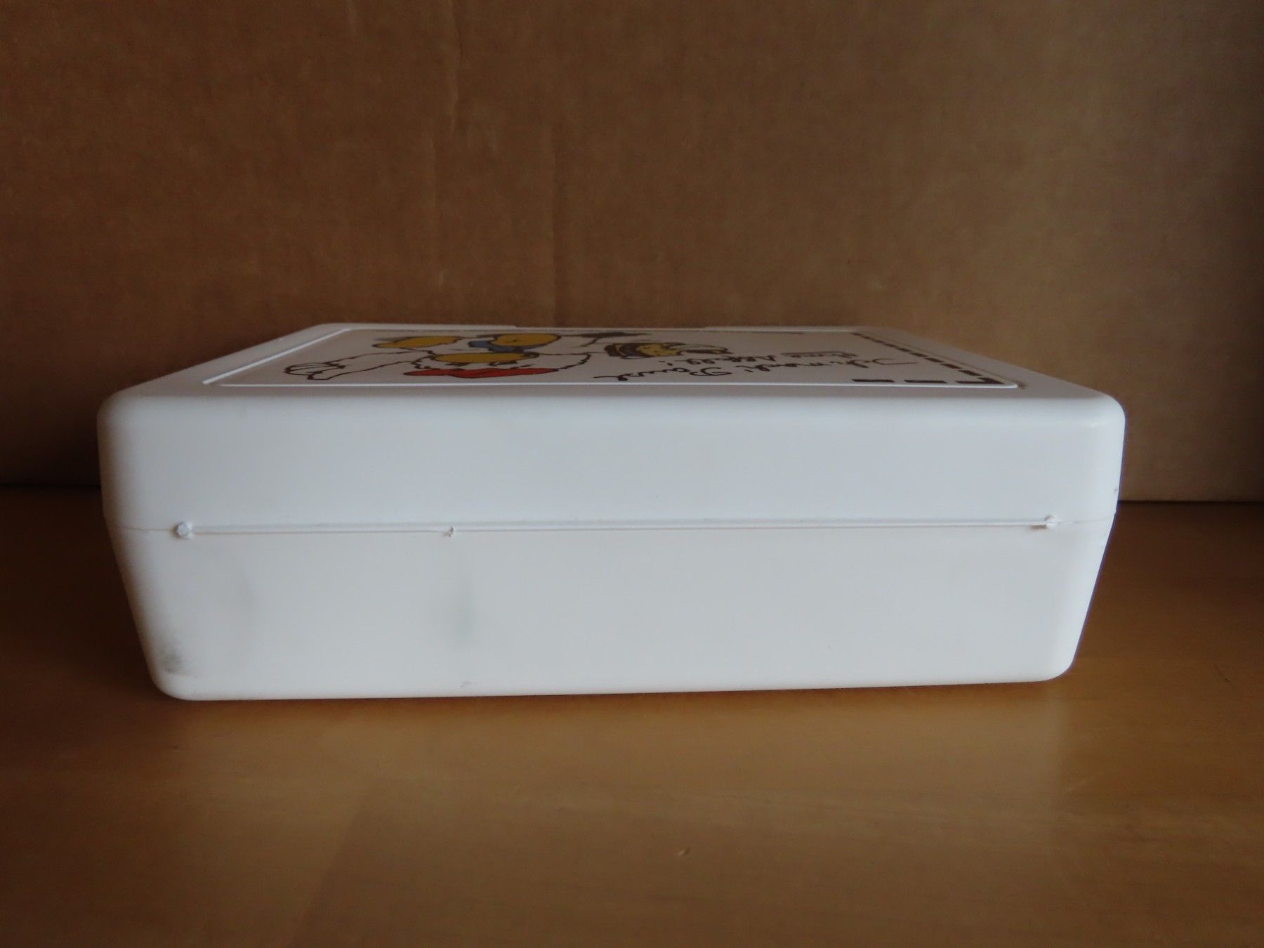 Maße: ca. 16 cm breit x ca. 5 cm hoch x 11 cm tief- immer die breiteste Stelle gemessen Innenmaß: ca. 15,5 cm x 10,5 cm Material: Plastik Hat feine Farbabschürfungen... Mehr