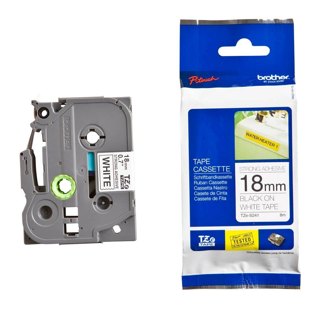 • Original Brother TZE-S241 Schriftband schwarz auf weiß 18mm x 8m extra stark klebend