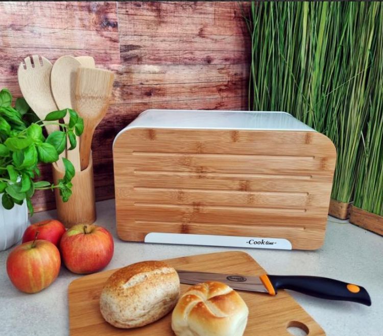 Brotkasten mit Schneidebrett Origano Rollbrotkasten Bambus Brotbox in 2 Farben