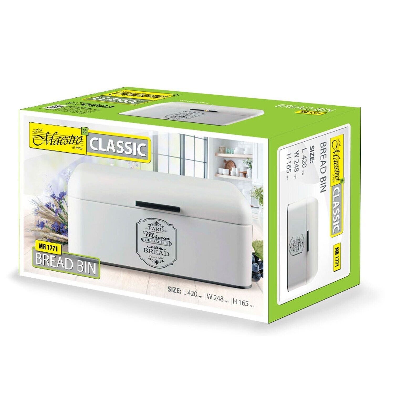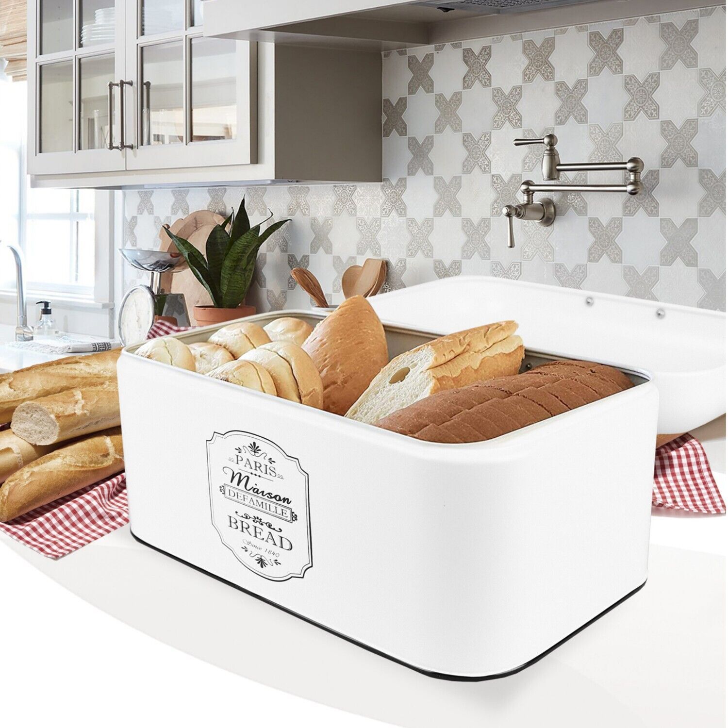 Maestro Brotkorb Brotbox Brotkasten Metall Weiß-Schwarz 30cm