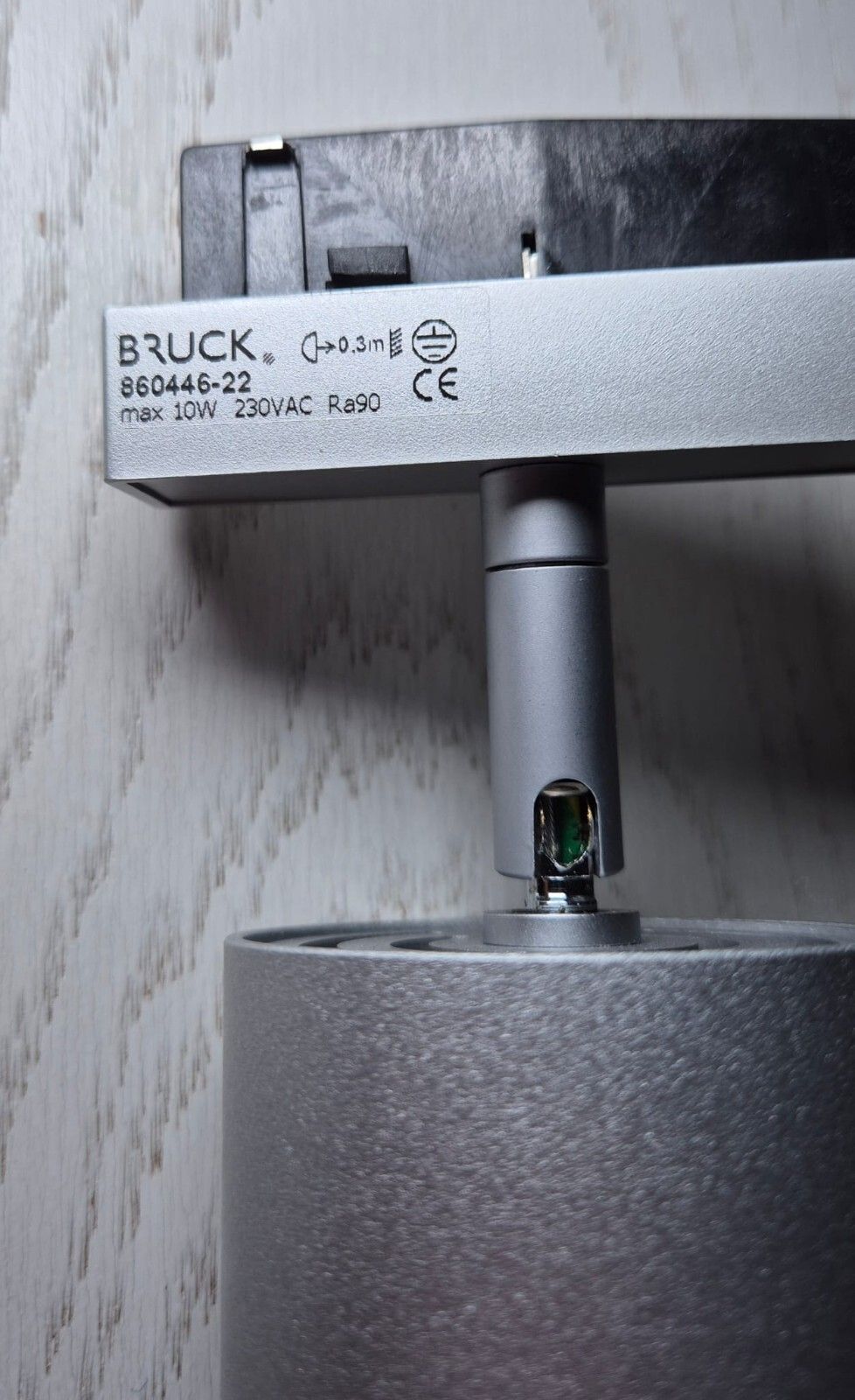 Bruck Star Spot 10 W LED DLR Schienenstrahler Abstrahlwinkel: 30 Grad - 65 Grad je nach einstellen an Schraube auf der Rückseite der Lampe Dimmbar MADE IN GERMANY Lichtstrom: 800 lm Farbtemperatur: warmes Licht ca 3000 K Sockel: Schienensystem Länge (mm) ca. 142 mit Schienensystem, 100 mm ohne Schie