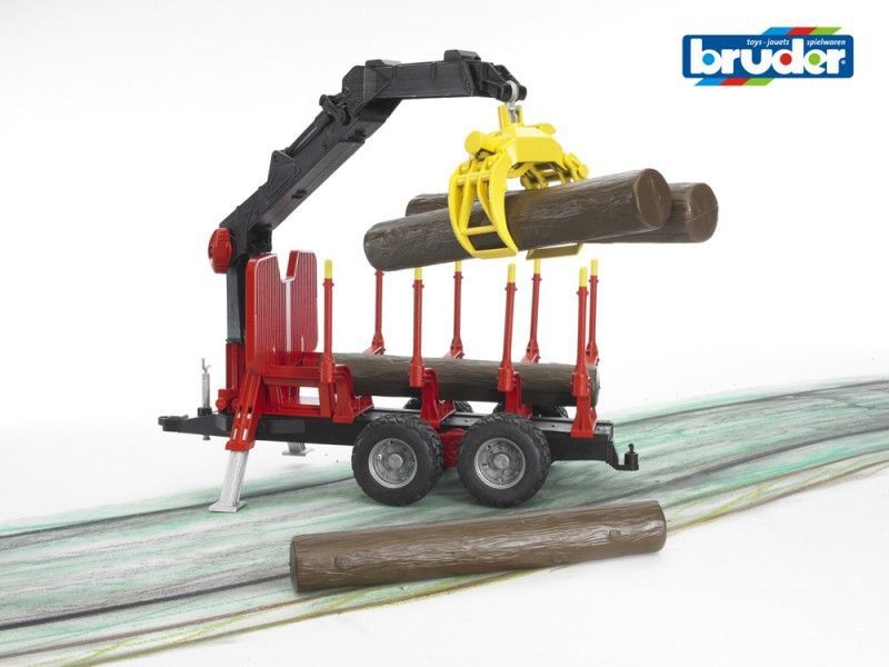 Bruder Bruder 02252 Rückeanhänger mit Ladekran Baumstämmen und Holzgreifer