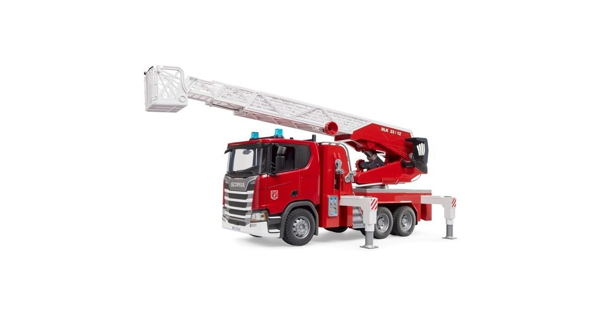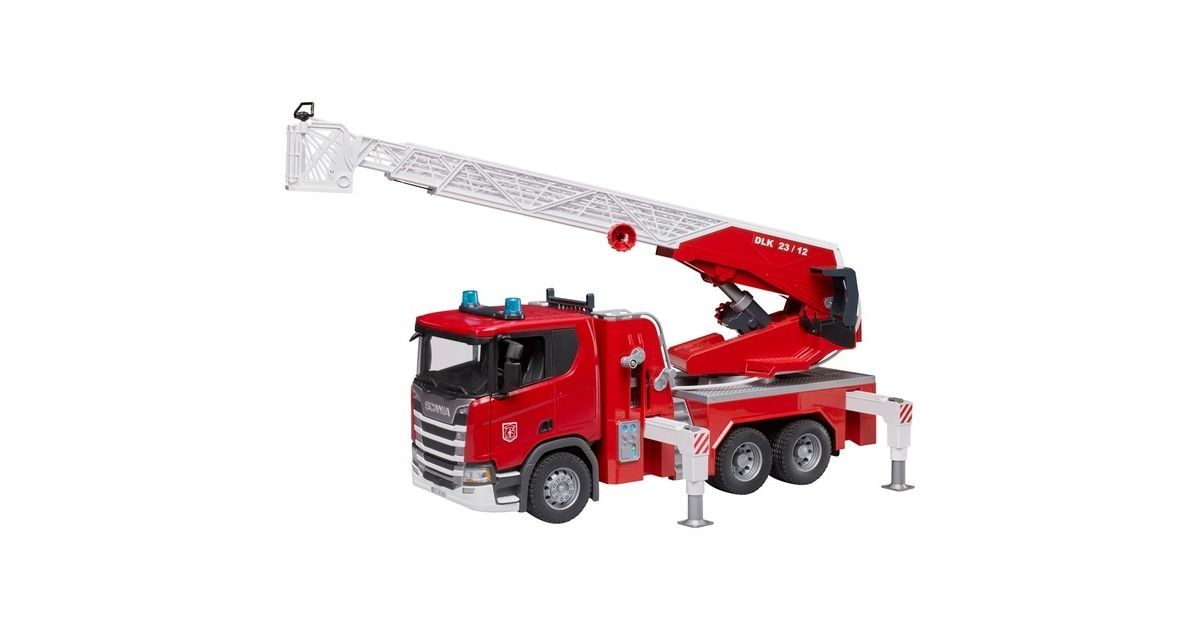 BRUDER bruder Scania Super 560R Feuerwehr mit Drehleiter, Wasserpumpe