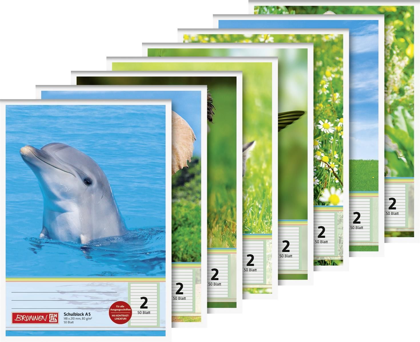 BRUNNEN Brunnen 104188201 Schulblock A5 14 Liniensysteme, Kontrastlineatur, Lin. 2