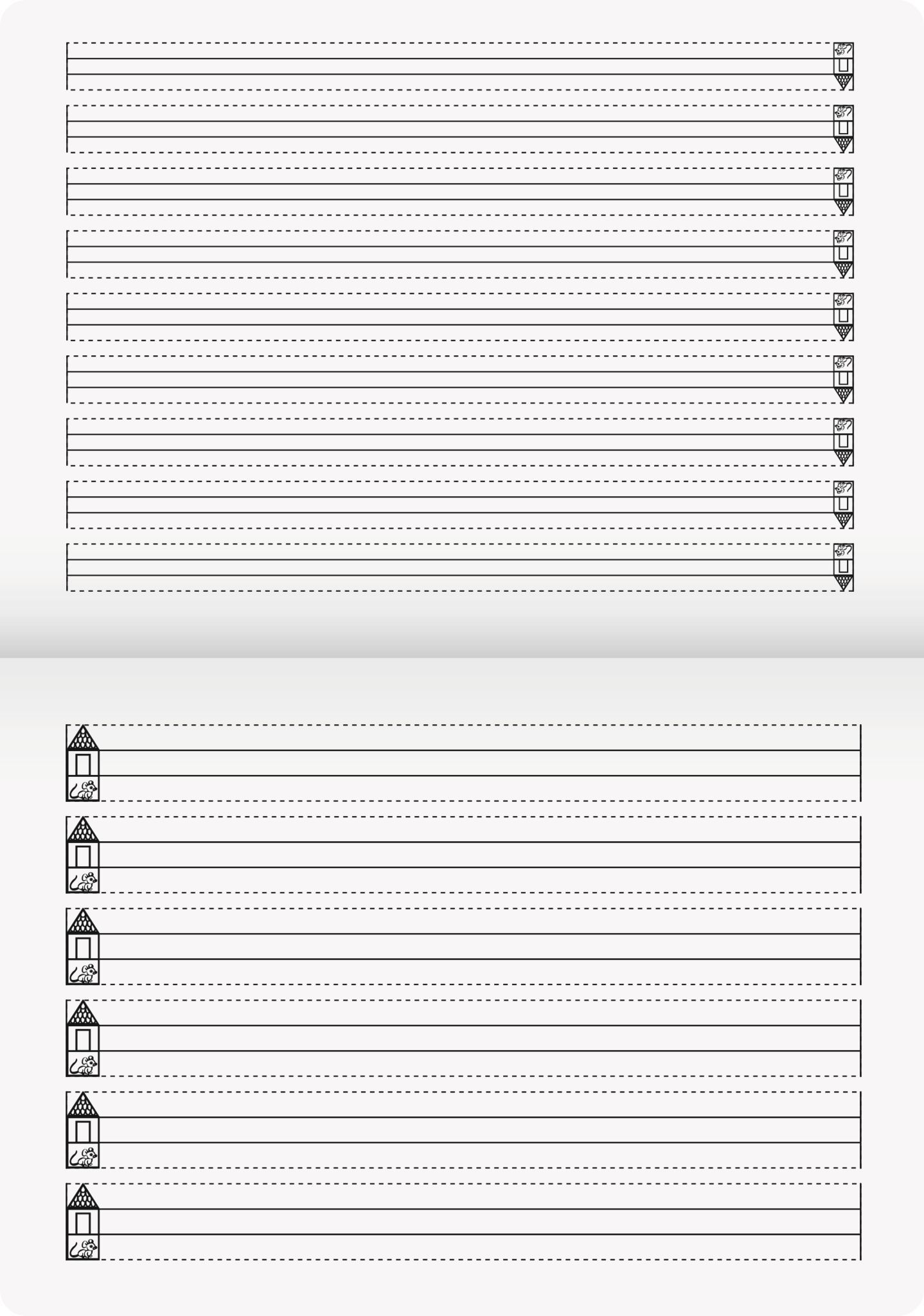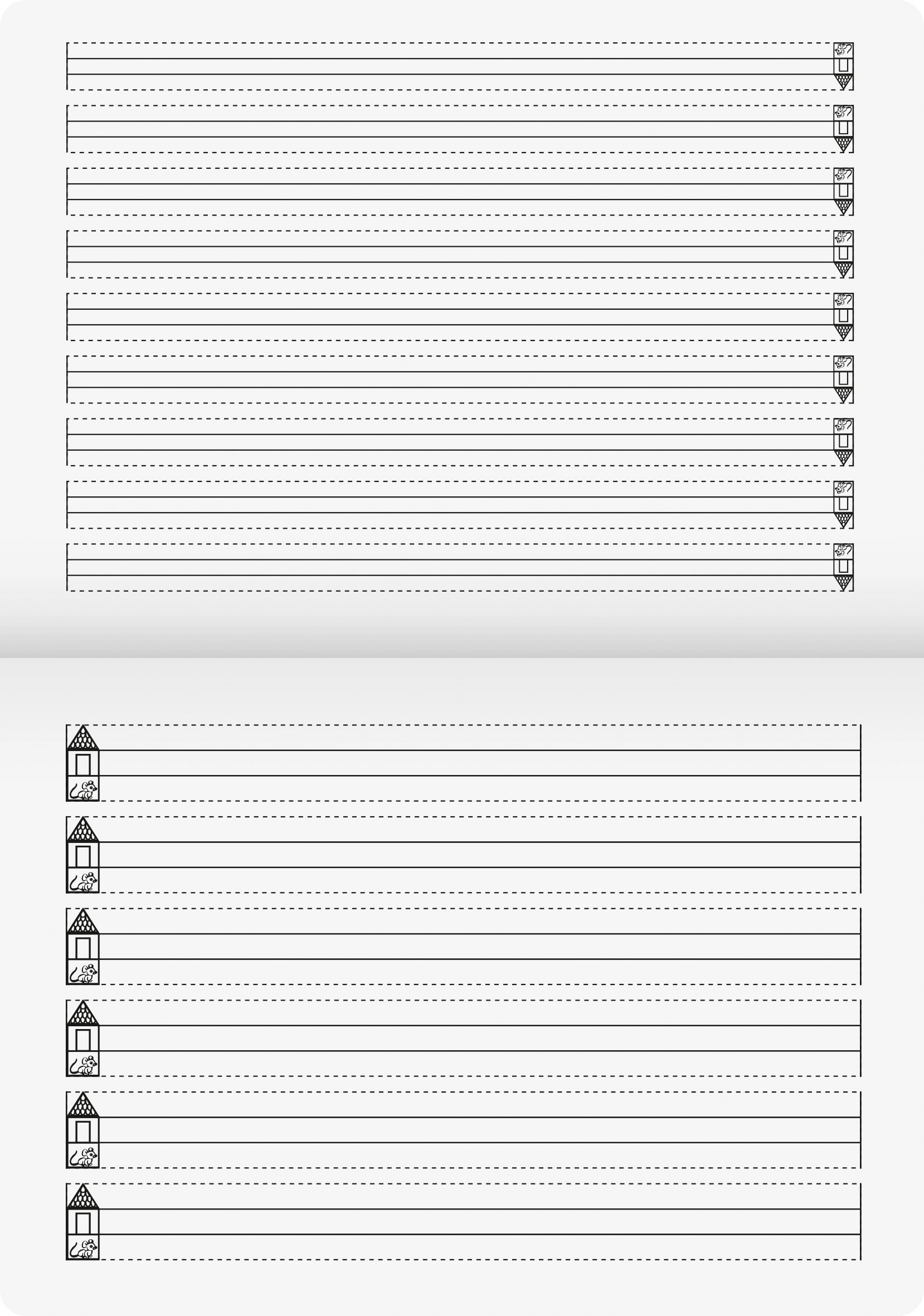• Brunnen 1044040 Schreiblernheft A4 quer Liniensysteme in zwei Größen, Lin. SL