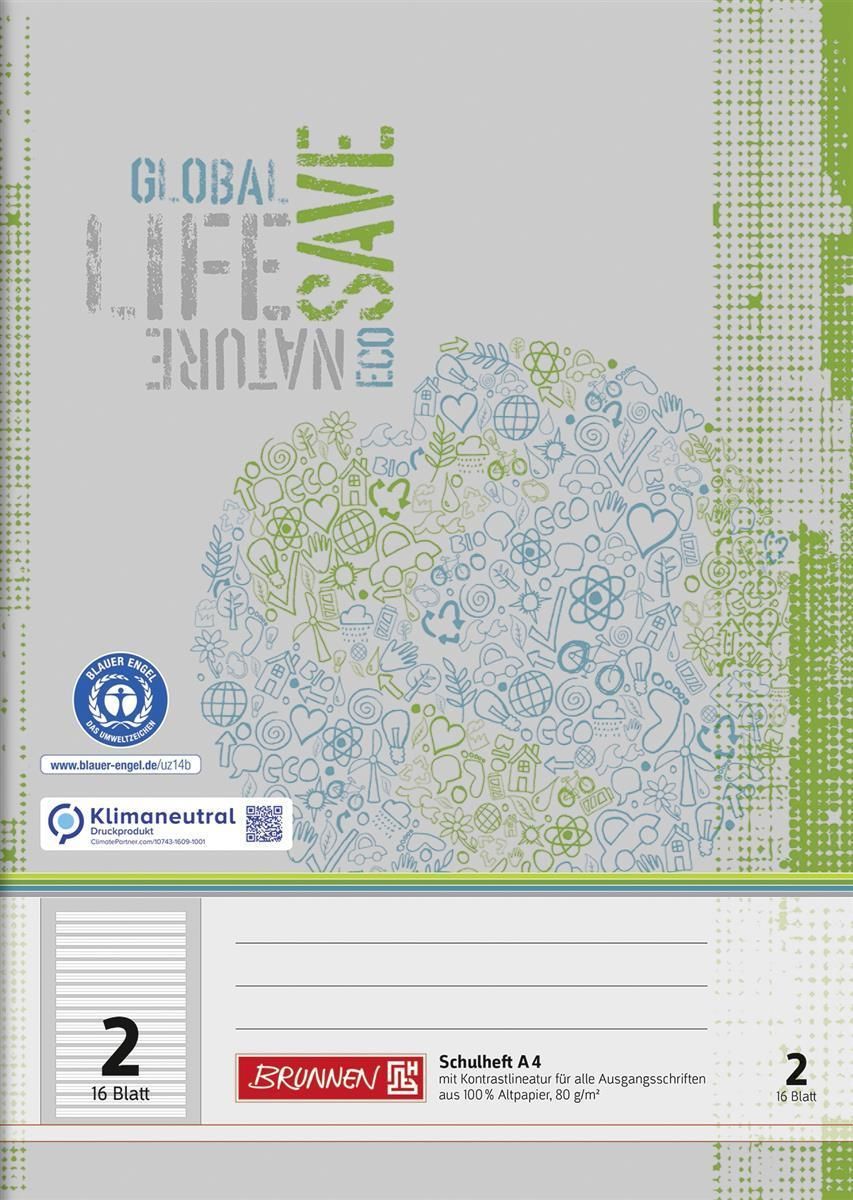 BRUNNEN Brunnen 104418201 Schulheft Recycling A4 17 Liniensysteme, Kontrastlineatur, alle