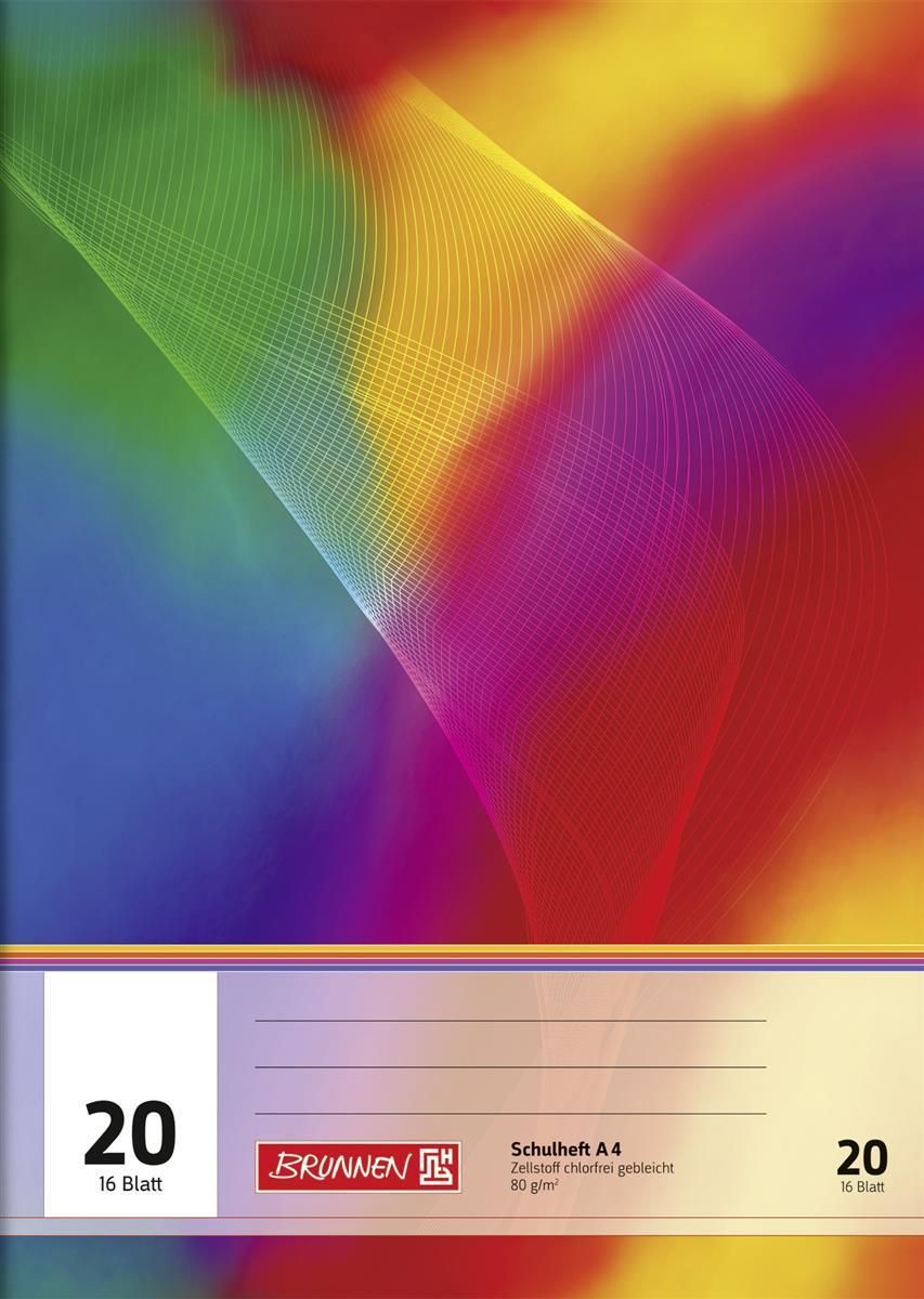 BRUNNEN Brunnen 104492002 Schulheft A4 unliniert, mit Linienblatt, Lin. 20 mehrfarbig