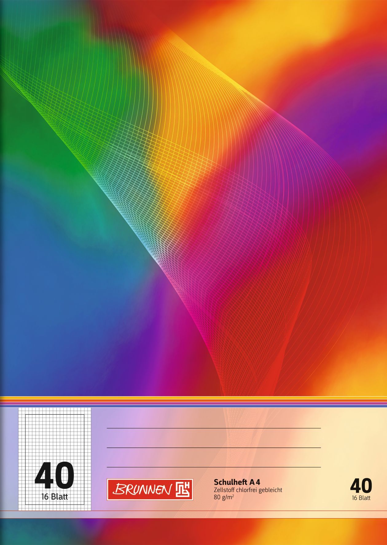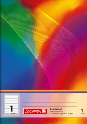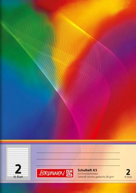 • Brunnen 104590602 Schulheft A5 unliniert, mit Linienblatt, Lin. 6 mehrfarbig
