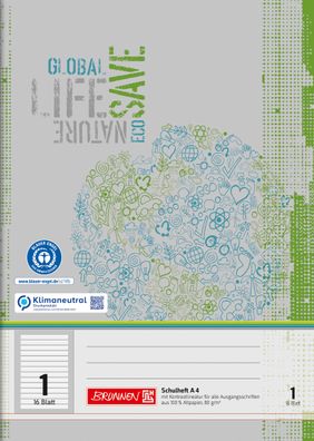 • Brunnen 104418101 Schulheft Recycling A4 14 Liniensysteme, Kontrastlineatur, alle Aus