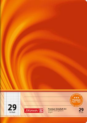• Brunnen 104470802 Schulheft Vivendi A4 5 x 7 mm rautiert mit Rand, Lin. 8f orange