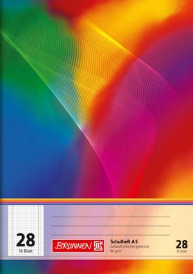 • Brunnen 104530702 Schulheft A5 5 mm kariert, Lin. 7 mehrfarbig