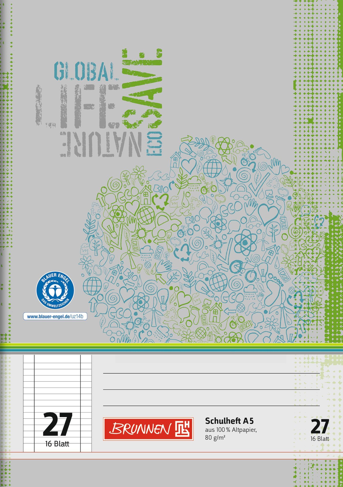 BRUNNEN Brunnen 104512701 Schulheft Recycling A5 liniert, 20-linig, Lineatur durchlaufend, Ra