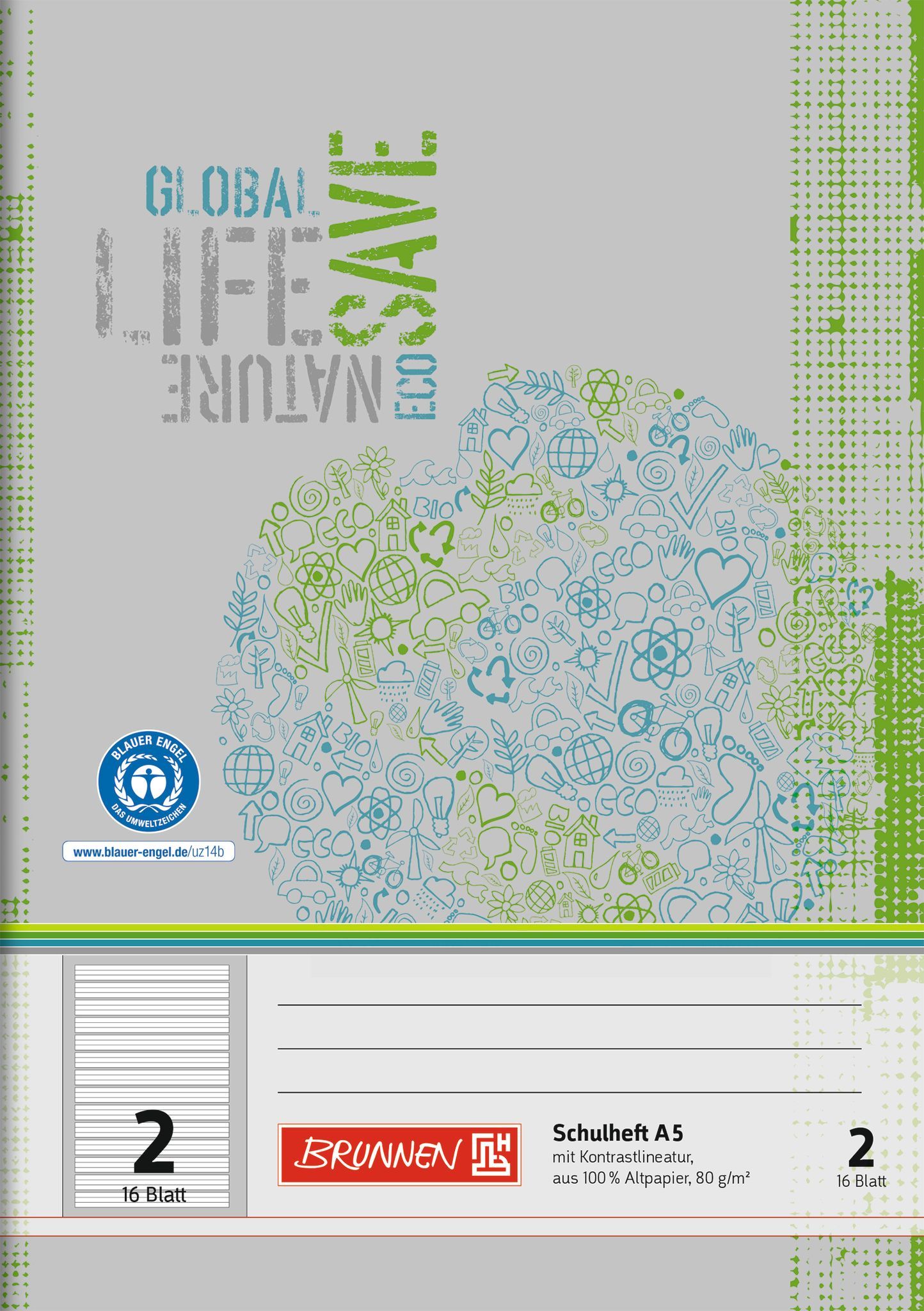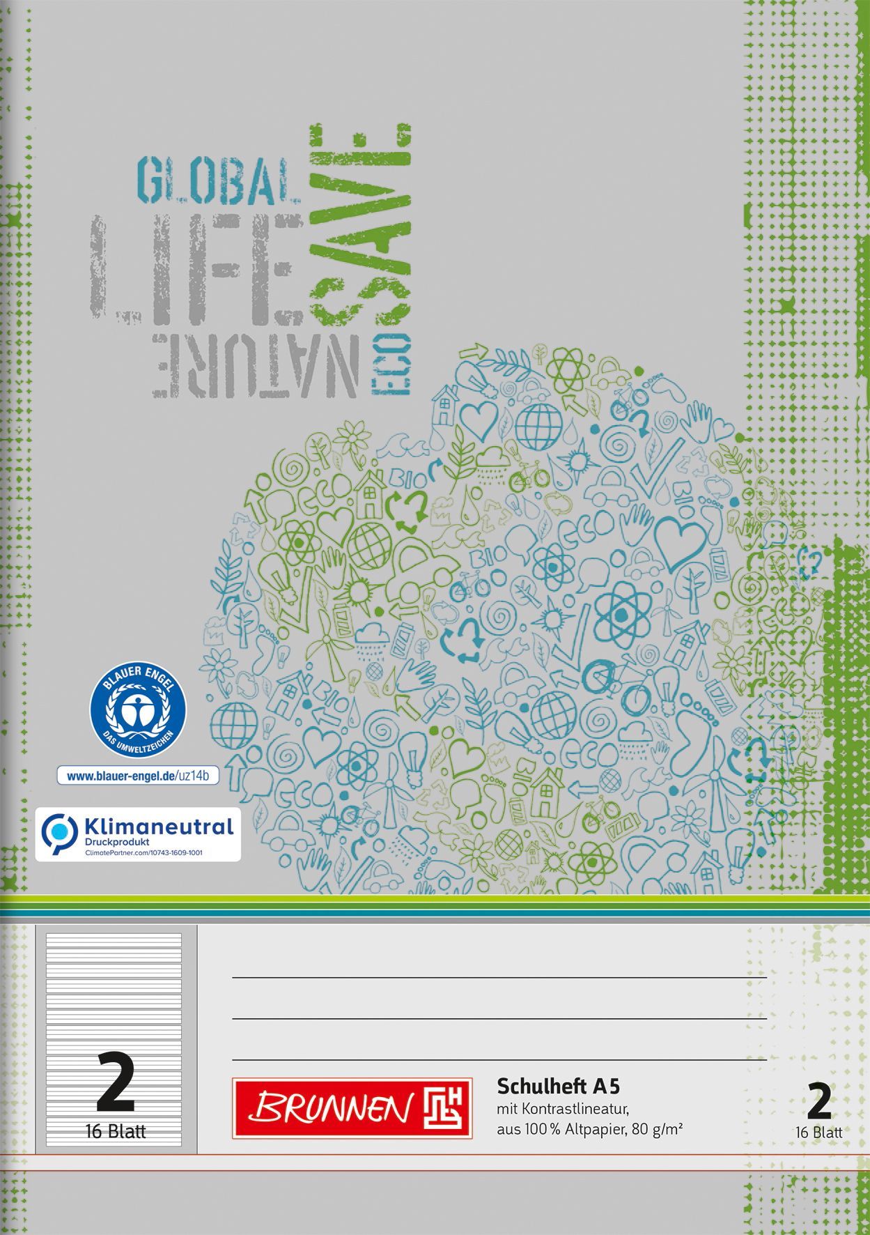 • Brunnen 104512701 Schulheft Recycling A5 liniert, 20-linig, Lineatur durchlaufend, Ra