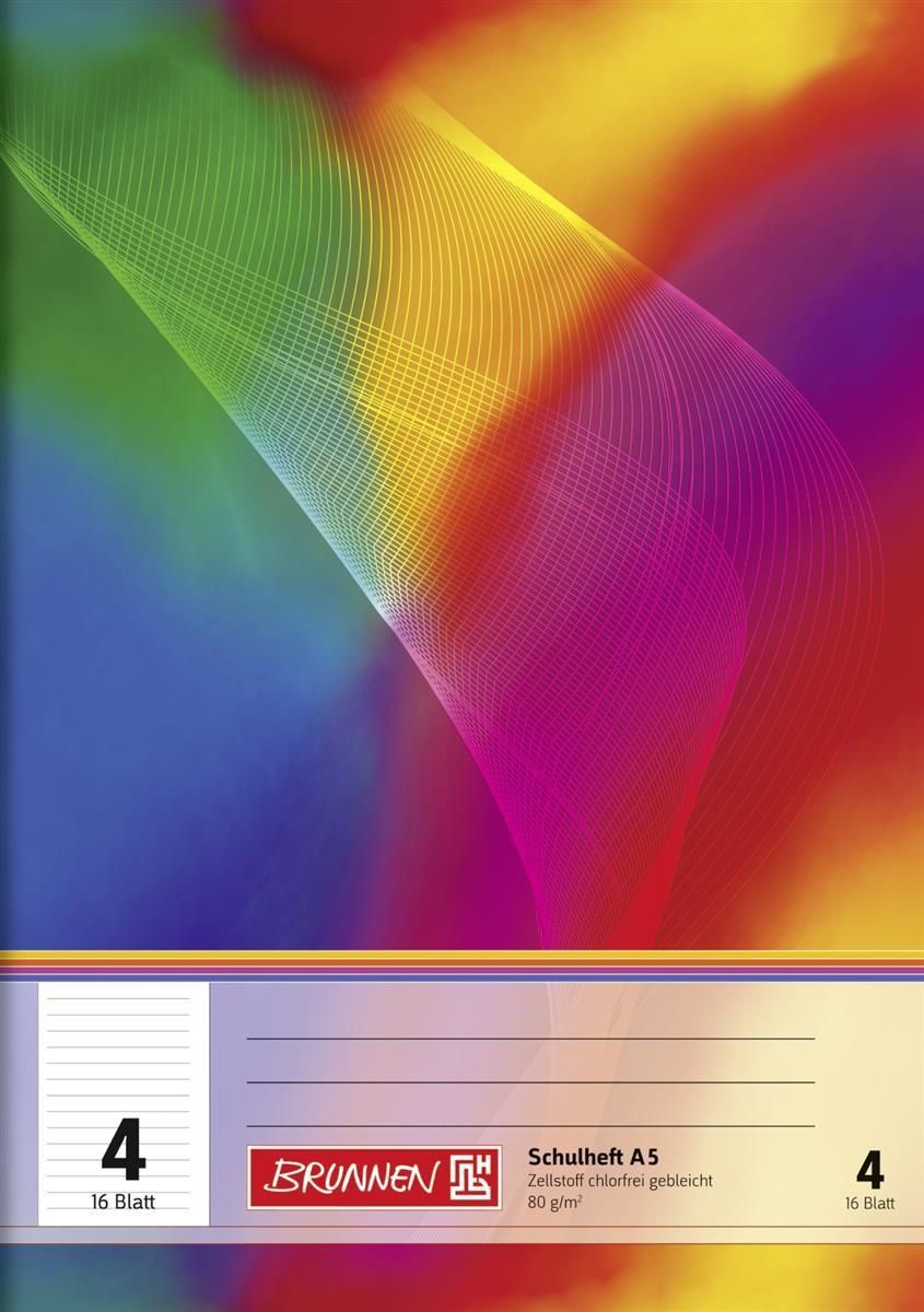 BRUNNEN Brunnen 104590402 Schulheft A5 liniert, Lin. 4 mehrfarbig