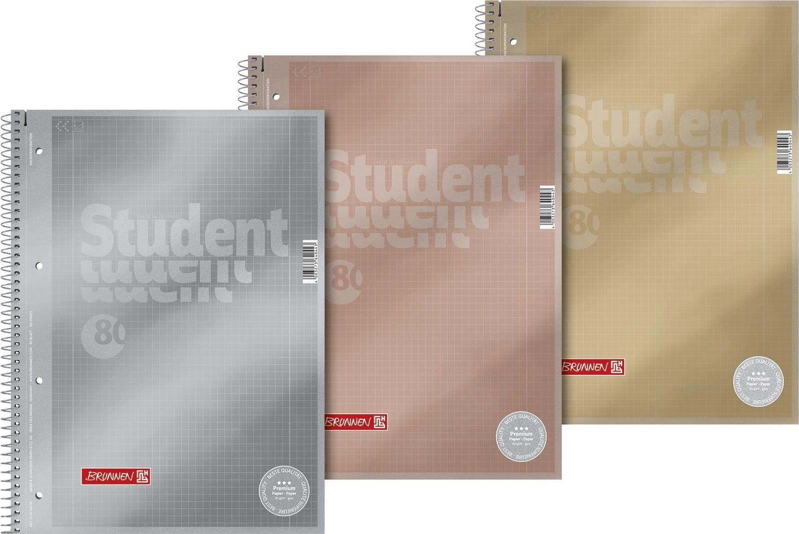 BRUNNEN Brunnen 106732895 1 Stück Collegeblock Premium Student Metallic A4 kariert, mit