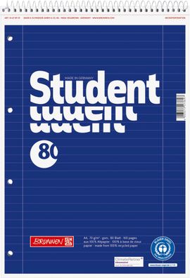 • Brunnen 106781101 Collegeblock Student Recycling A4 liniert, mit Randlinie innen und