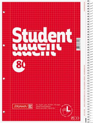 • Brunnen 1067126 Collegeblock Student Premium A4 kariert, mit Rand, Lin. 26 Deckblatt: