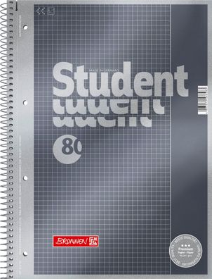 • Brunnen 1067152 Collegeblock Student Premium A5 5 mm kariert Deckblatt: anthrazit-met