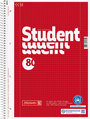• Brunnen 106783801 Collegeblock Student Recycling A4 kariert, mit Randlinie innen und