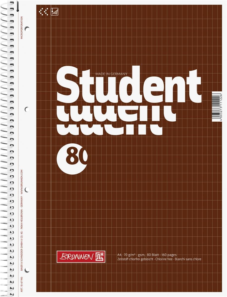 BRUNNEN Brunnen 1067943 Collegeblock Student A4 5 x 9 mm rautiert Deckblatt: braun