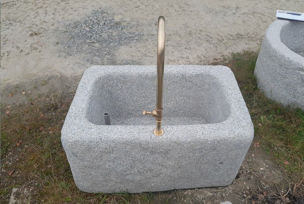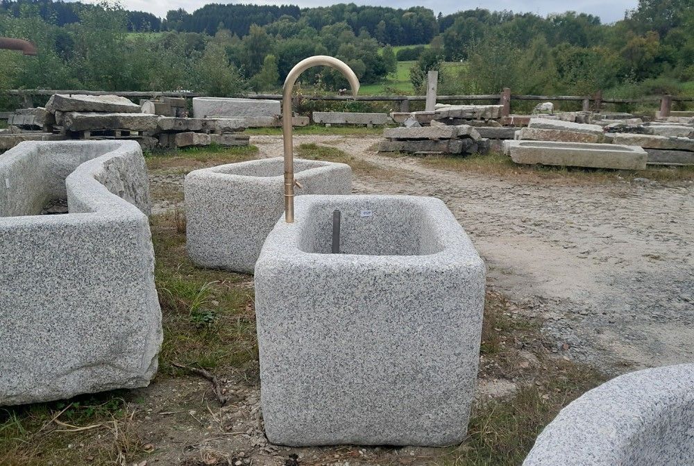 Wunderschöner Granitbrunnen mit in der Brunnenrückwand montiertem Messingeinlauf und Überlaufrohr, ein Schmuckstück für jeden Garten und jedes Haus. Länge x Breite x Höhe: 113 x 74 x 62 cm Gewicht: 700 kg Preis: Euro 2015,97 zzgl. MwSt. = Euro 2399,-- Lieferung und kostenlose Selbstabholung möglich ... Mehr