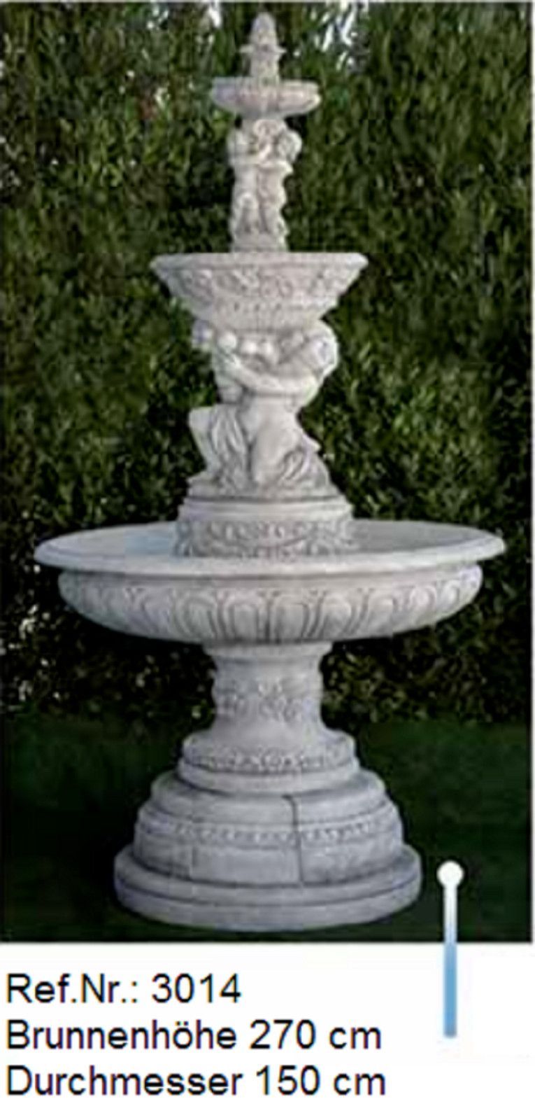 Brunnen aus Weißstein mit zwei Schalen und einer Zapfenfigur ( Ref. Nr. 3026 )